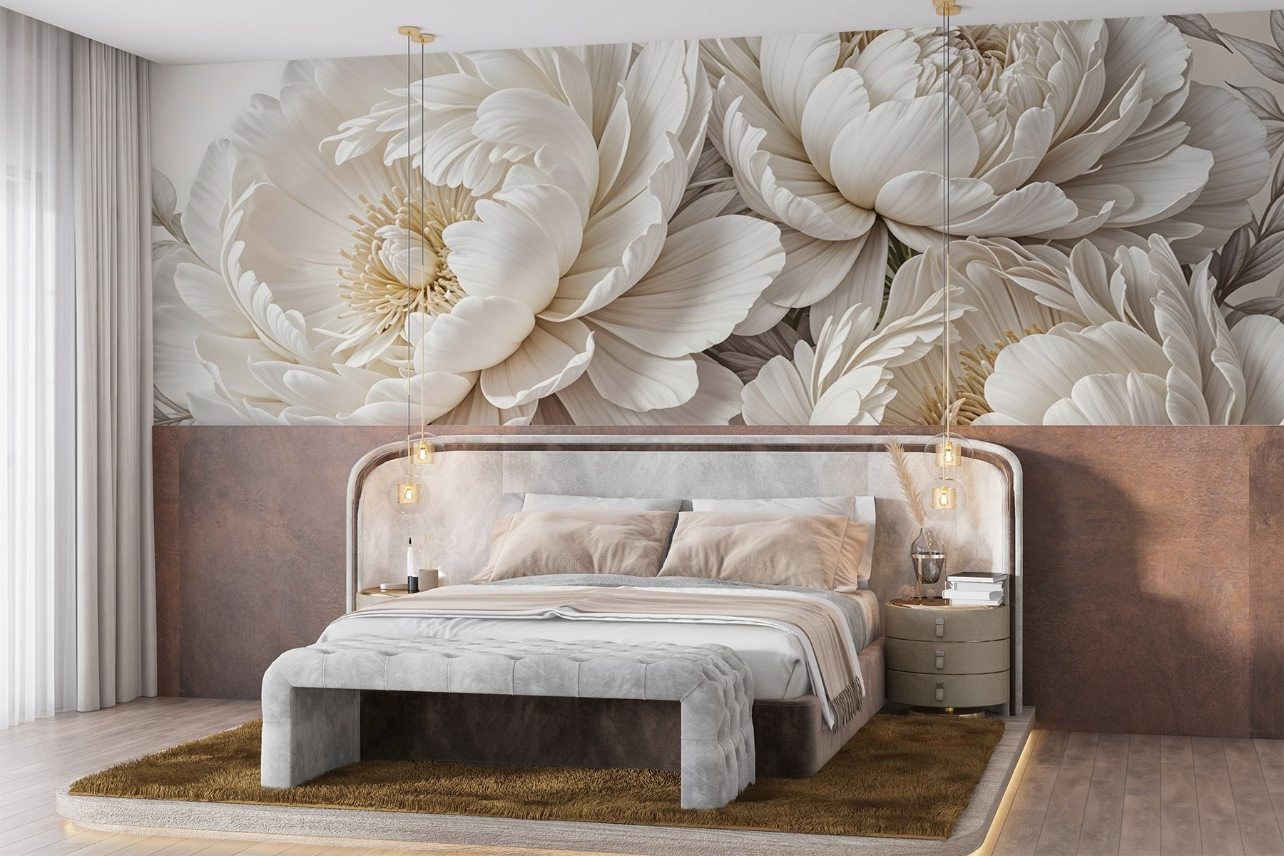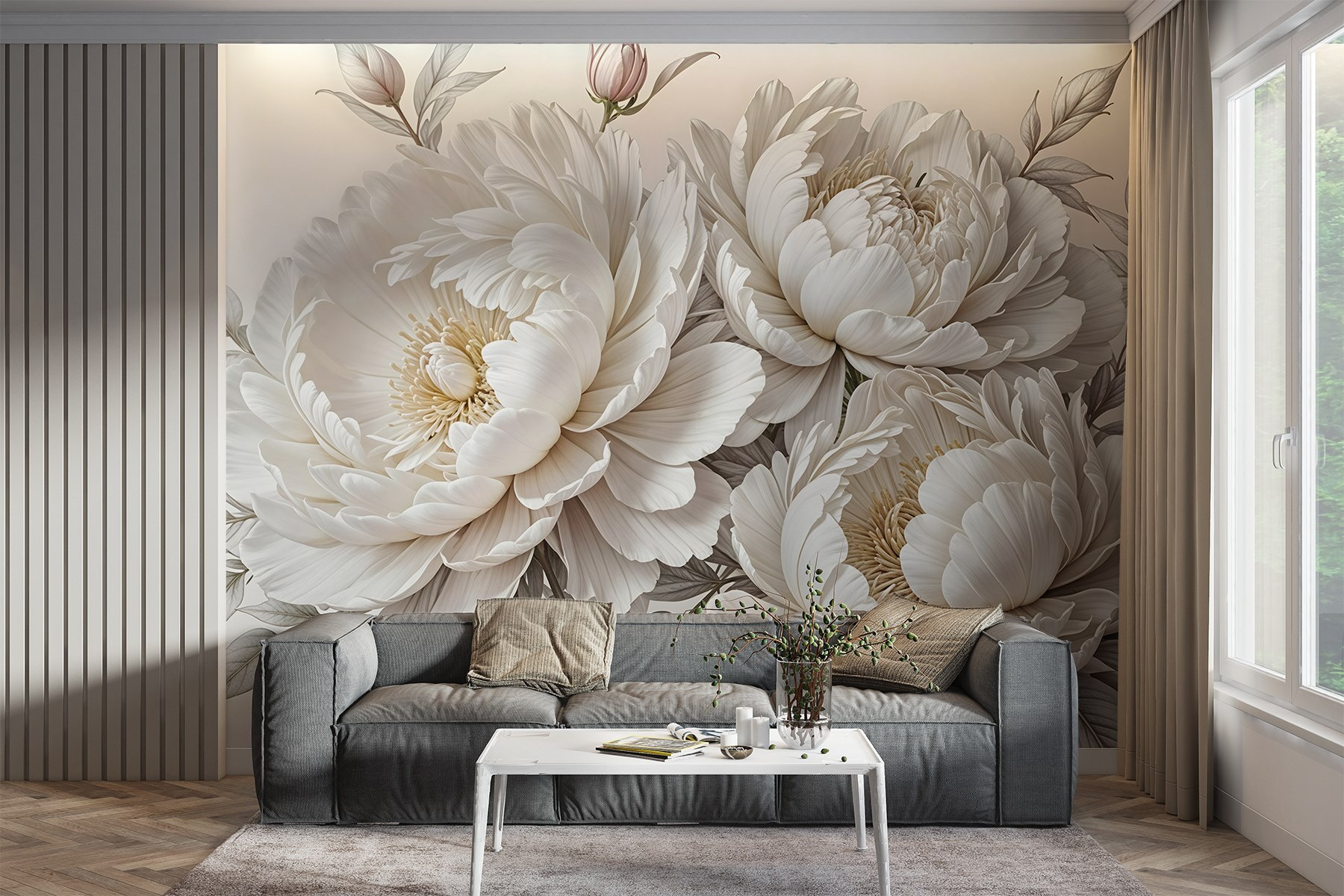 Przekształć dowolny pokój w spokojny ogród dzięki tej oszałamiającej fototapecie z bukietem delikatnych białych kwiatów. To tak, jakby wnieść powiew świeżego powietrza do swojej przestrzeni, bez pyłków! Każda piwonia kwitnie z taką elegancją, że możesz poczuć się zainspirowany do zorganizowania przyjęcia herbacianego – lub przynajmniej usiąść z dobrą książką i filiżanką czegoś ciepłego. Łagodne odcienie i delikatne płatki tworzą kojące tło, dzięki czemu idealnie nadają się do przytulnego salonu lub spokojnej sypialni. Wyobraź sobie, że budzisz się w takim otoczeniu każdego dnia – to dopiero poprawia nastrój! Niezależnie od tego, czy chodzi o wyrafinowaną atmosferę, czy po prostu o dodanie kwiatowego uroku, ta fototapeta szepcze piękno i spokój, zapraszając każdego, kto ją zobaczy, aby poświęcił chwilę i odetchnął głęboko.