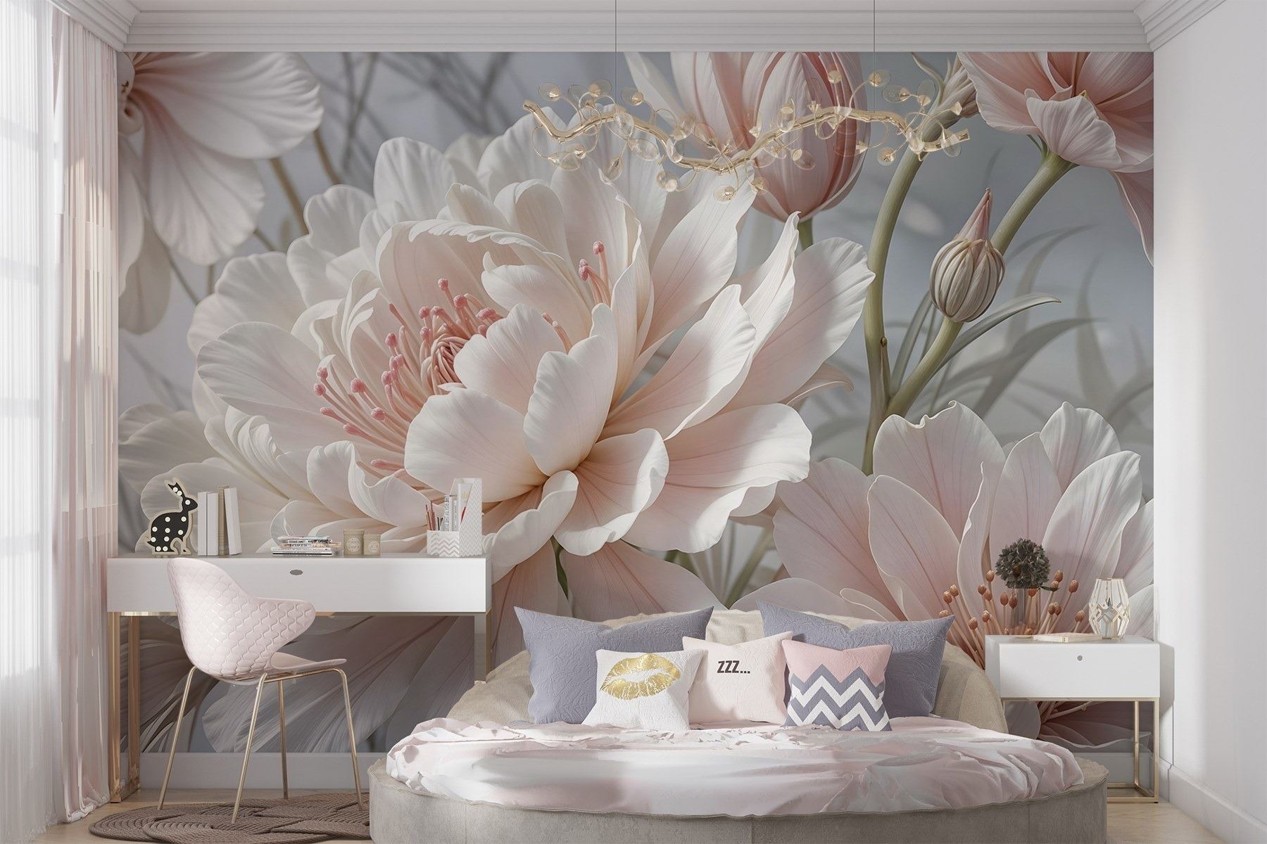 Przekształć dowolny pokój w oazę marzeń dzięki tej czarującej fototapecie “Delikatne kwiaty w miękkich pastelowych odcieniach”. Wyobraź sobie, że budzisz się w otoczeniu wspaniałych piwonii i tulipanów, których miękkie płatki praktycznie szepczą słodkie nuty, gdy światło tańczy po ich krzywiznach. To jak przeniesienie ogrodu do domu – bez konewki i uciążliwych owadów! Delikatne pastele tworzą spokojną atmosferę, która sprawia, że każda przestrzeń jest nieco bardziej pogodna. Idealna do przytulnego kącika do czytania lub tętniącego życiem salonu, ta fototapeta zachęca do relaksu i uroku. Trudno się nie uśmiechać w otoczeniu takiego piękna; to jak ciepły uścisk dla twoich ścian!