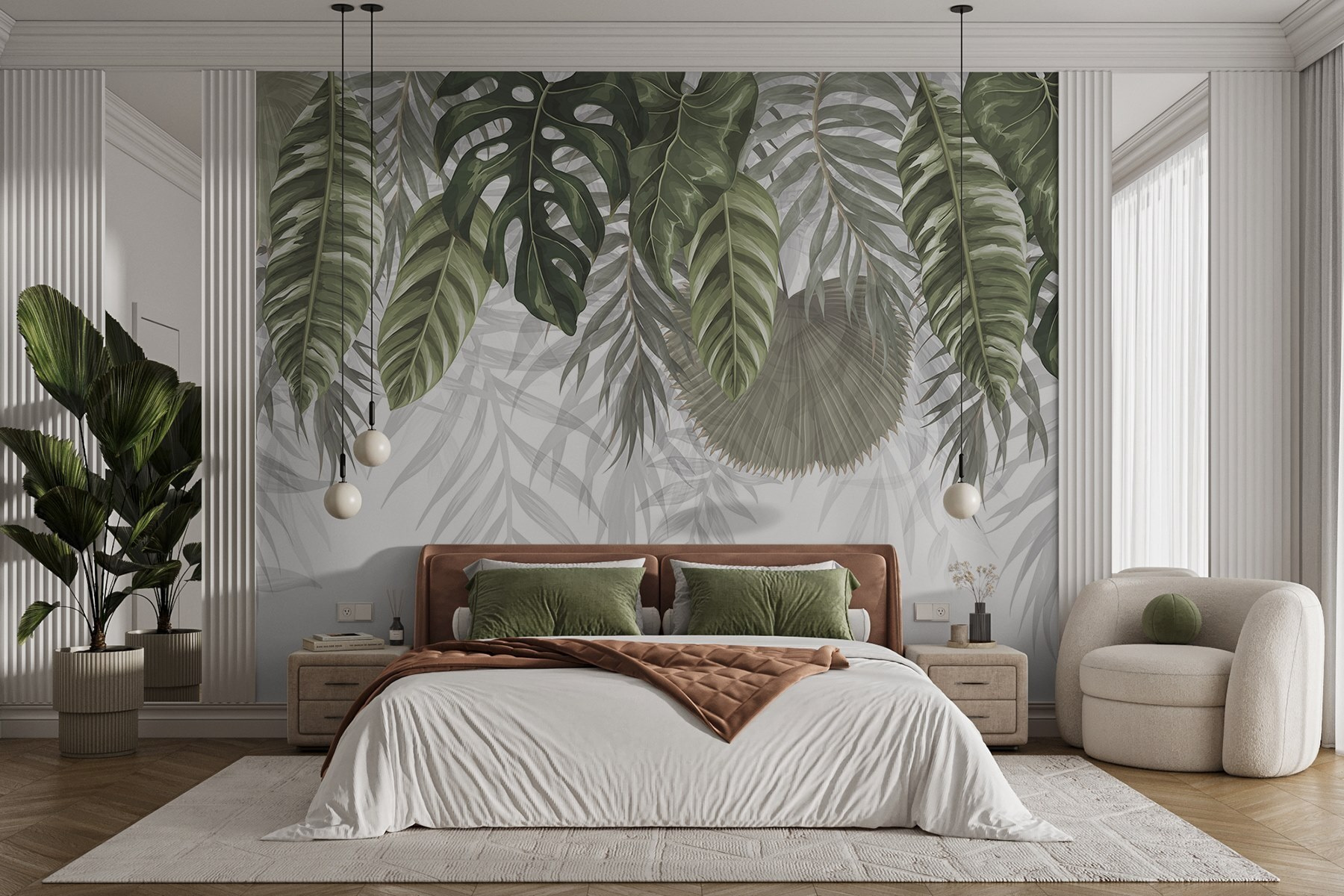Idealna do przytulnego kącika do czytania lub tętniącej życiem jadalni, ta fototapeta dodaje odrobinę natury, która sprawi, że każdy poczuje się swobodnie. Znajomi pomyślą, że masz ukryty sekretny ogród. Ponadto, trudno się nie uśmiechać, gdy te zachwycające liście czuwają nad twoją przestrzenią. Kto by pomyślał, że natura może być tak stylowa?