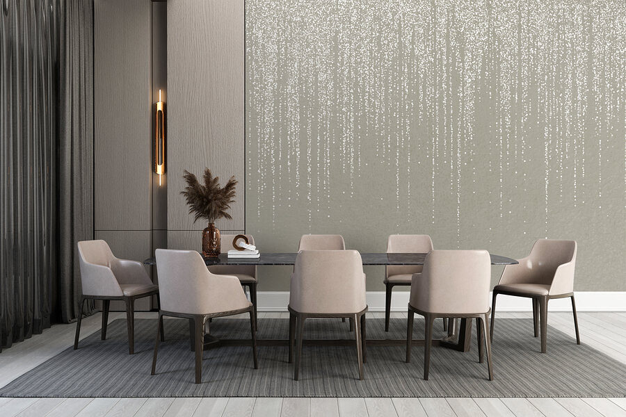 Przekształcanie przestrzeni może przypominać magię, a ta fototapeta “Białe plamki na szarej powierzchni” właśnie to robi. Wyobraź sobie, że wchodzisz do pokoju, w którym te miękkie, delikatne plamki wydają się tańczyć figlarnie na spokojnym szarym tle. To jak delikatne opady śniegu – ale na ścianie!