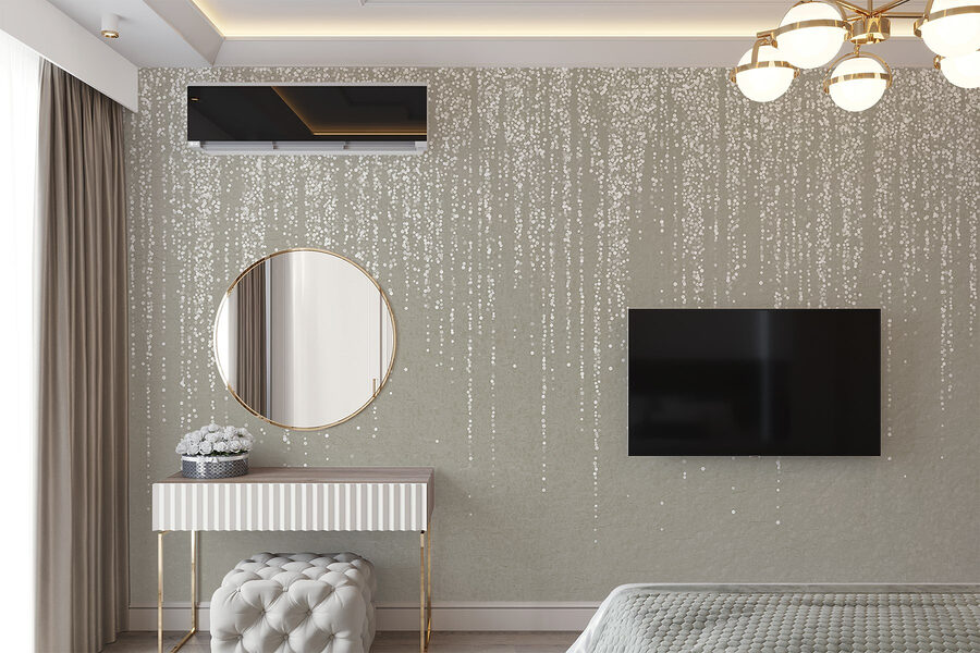 Powłoka winylowa to cienka warstwa PVC nałożona na podłoże z włókniny. Obecność winylu sprawia, że tapeta jest odporna na uszkodzenia, umożliwia łatwe czyszczenie wilgotną gąbką i nadaje powierzchni wytłaczaną teksturę, przypominającą lnianą tkaninę.