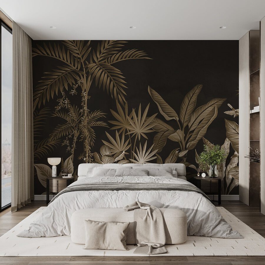 Przekształć swoją przestrzeń w bujne zacisze dzięki tej oszałamiającej fototapecie ściennej. Przedstawia eleganckie rośliny i liście, wnosząc czarujący dotyk tropików wprost do twojego domu. Wyobraź sobie popijanie kawy w otoczeniu tętniącej życiem dżungli – co za nastrój! Bogate kolory tańczą na ciemnym tle, tworząc przytulną, ale wyrafinowaną atmosferę. To jak posiadanie kawałka natury w domu, bez komarów! Idealna do salonu lub kreatywnego kącika, ta fototapeta zaprasza do spokoju i odrobiny przygody. Pozwól swoim ścianom opowiedzieć historię, która jest żywa i świeża, zachowując przy tym swój styl!