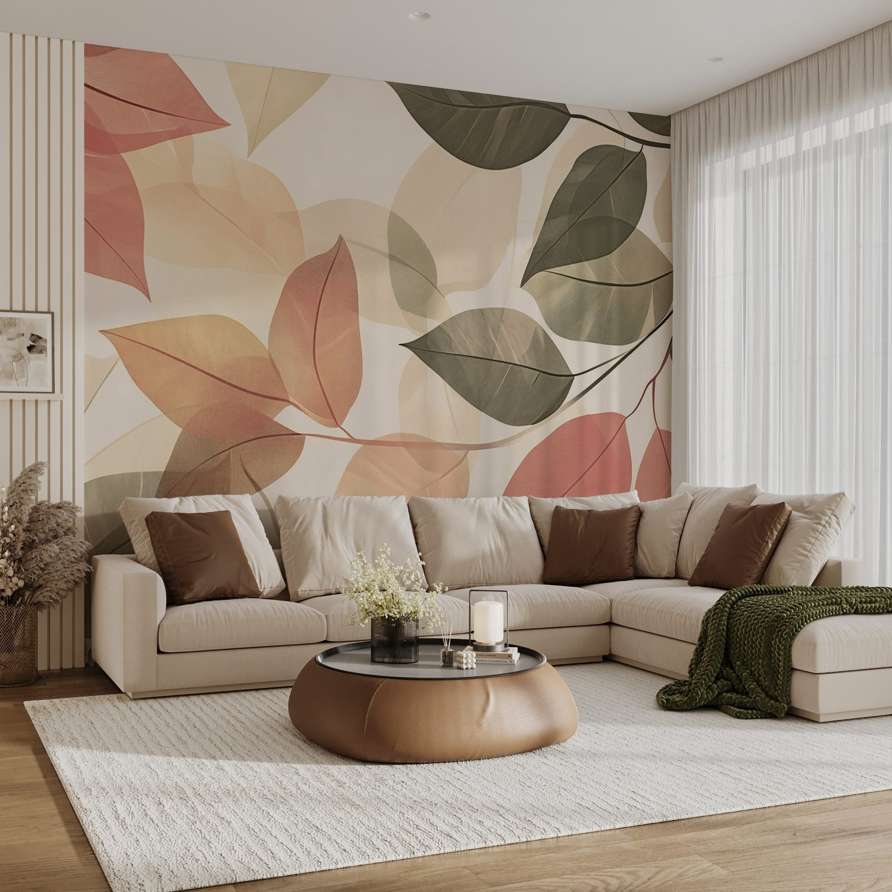 Przekształć nudną ścianę w uspokajającą ucieczkę dzięki tej fototapecie “Delikatne odcienie piękna natury”. Wyobraź sobie: wchodzisz do pokoju i bum! Wita cię delikatny taniec liści w stonowanych różach i zieleniach, przywołujący spokój leśnego spaceru. To tak, jakby przenieść kawałek natury do wnętrza bez uciążliwych owadów. Poczuj, jak stres znika, gdy te miękkie odcienie owijają się wokół ciebie, tworząc przytulną, zachęcającą atmosferę. Idealna do kącika do czytania lub spokojnej sypialni, ta fototapeta nie tylko dekoruje – pomaga ci trochę łatwiej oddychać. Wyobraź sobie, jak zwijasz się w kłębek z filiżanką herbaty, otoczony delikatnym dotykiem natury. Kto by pomyślał, że ściany mogą być tak żywe?