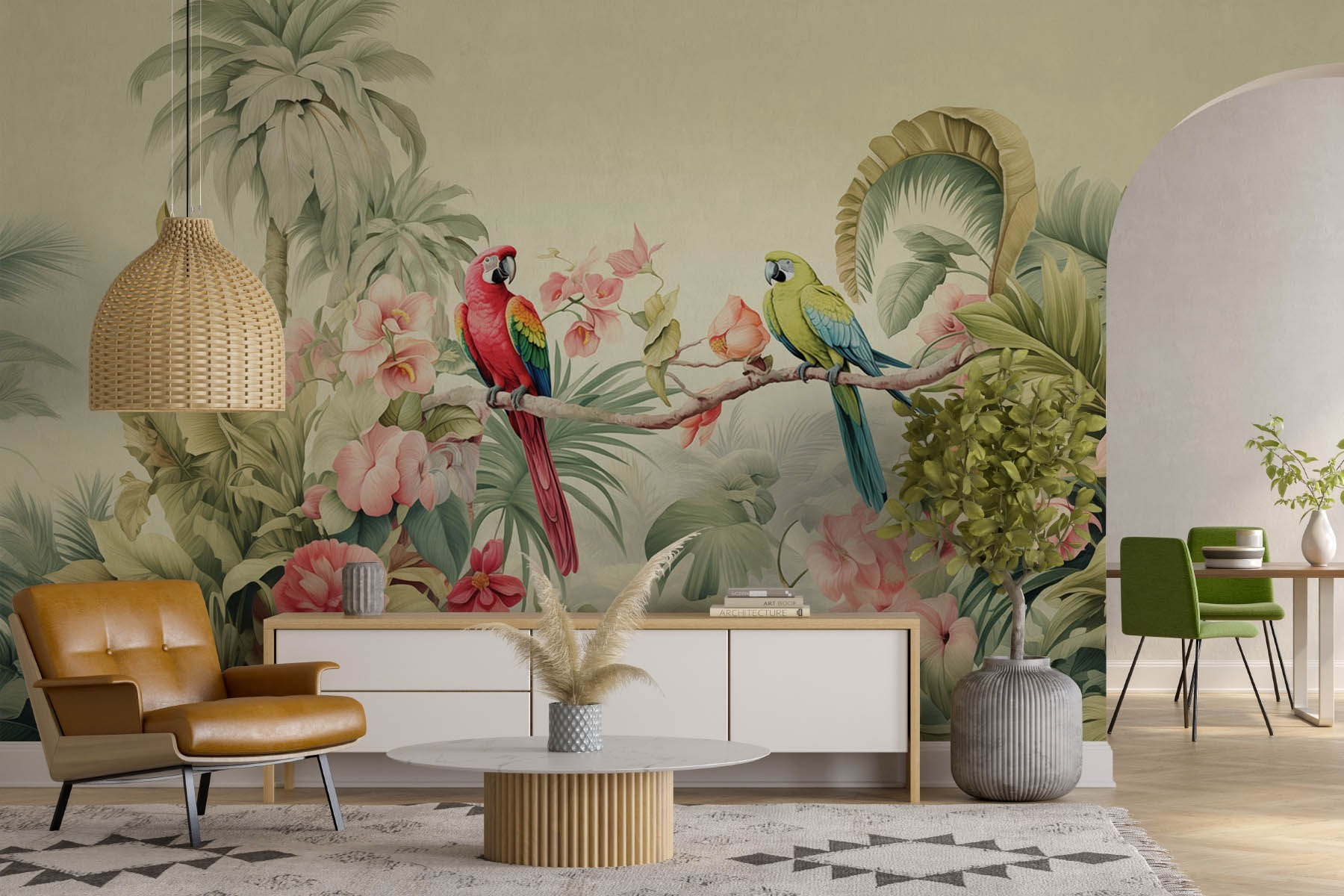 Odmień swoją przestrzeń dzięki tej żywej fototapecie ściennej przedstawiającej uroczą parę papug siedzących z gracją na gałęzi. Ci pierzaści przyjaciele wprowadzą odrobinę tropikalnego raju do twojego domu. Bujne kwiaty i liście tworzą spokojną atmosferę, dzięki czemu idealnie nadają się do przytulnego kącika do czytania lub tętniącego życiem salonu. Wyobraź sobie popijanie porannej kawy w otoczeniu tej feerii barw – to jak wieczne wakacje! Dodatkowo, zabawne wibracje papug mogą nawet zainspirować do bezczelnych rozmów. Wykorzystaj piękno natury i pozwól swoim ścianom opowiedzieć historię!