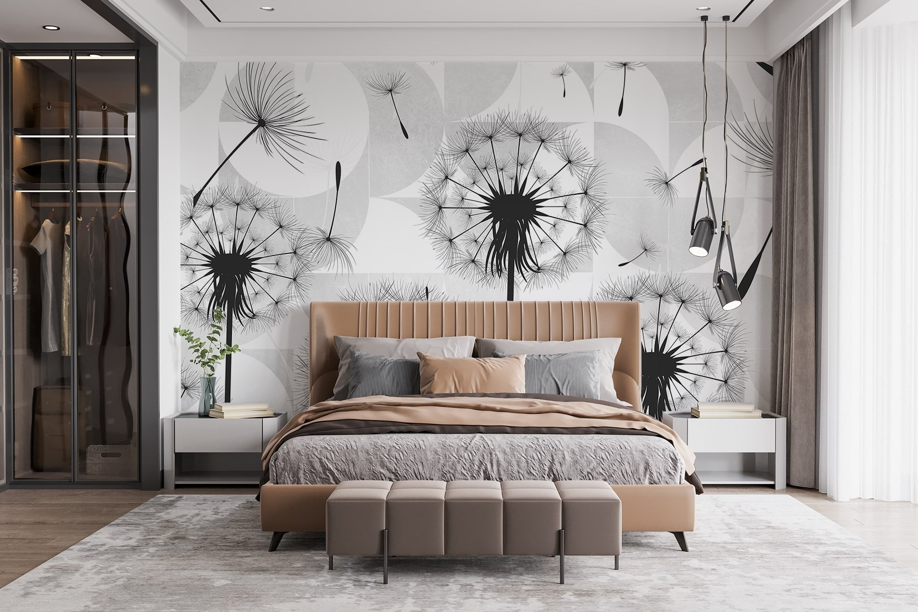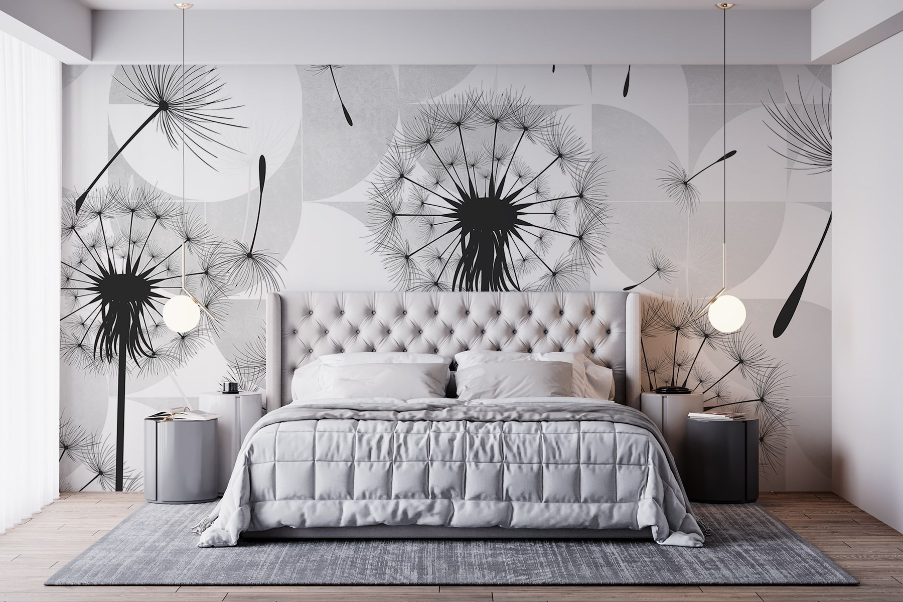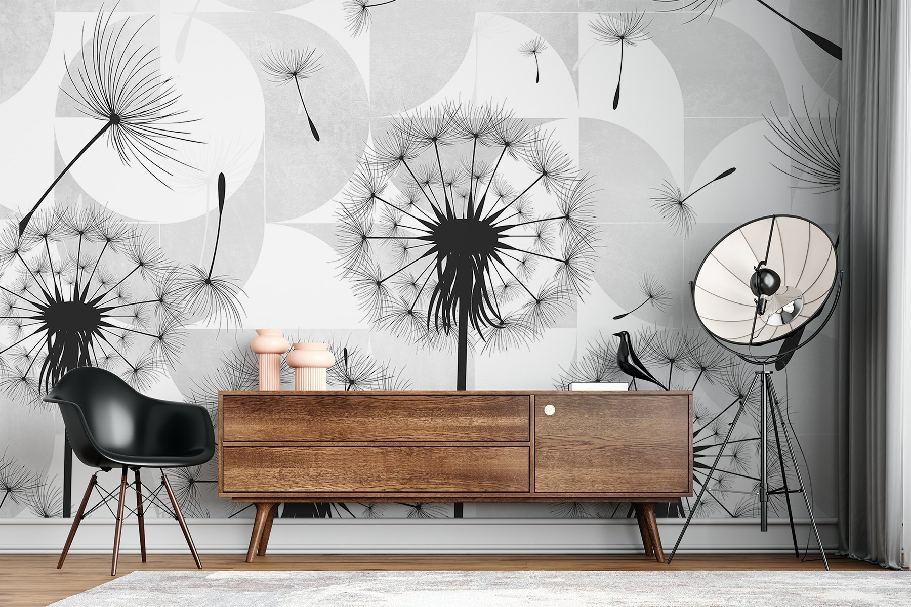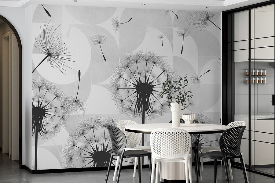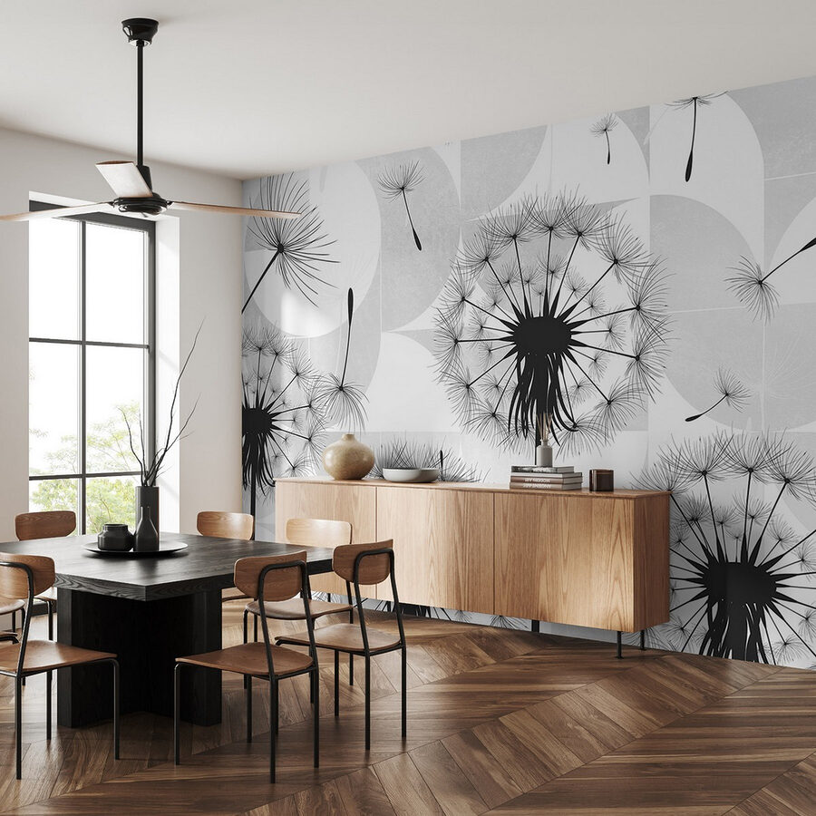 Przekształć nudną ścianę w senną ucieczkę dzięki tej oszałamiającej fototapecie z czarnymi nasionami mniszka lekarskiego tańczącymi w powietrzu. To jak przeniesienie odrobiny natury do wnętrza! Wyobraź sobie, że popijasz poranną kawę, podczas gdy te delikatne nasiona unoszą się w powietrzu, wywołując myśli o życzeniach i słonecznych dniach. Ta fototapeta to nie tylko element dekoracyjny; opowiada historię, zapraszając poczucie spokoju i kaprysu do twojej przestrzeni. Elegancki kontrast czerni i bieli tworzy nowoczesny klimat, dzięki czemu idealnie nadaje się do każdego pomieszczenia. Kto wie? Może po prostu zainspiruje kilka marzeń na jawie!