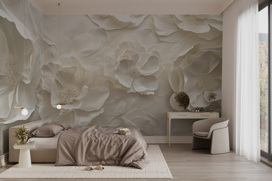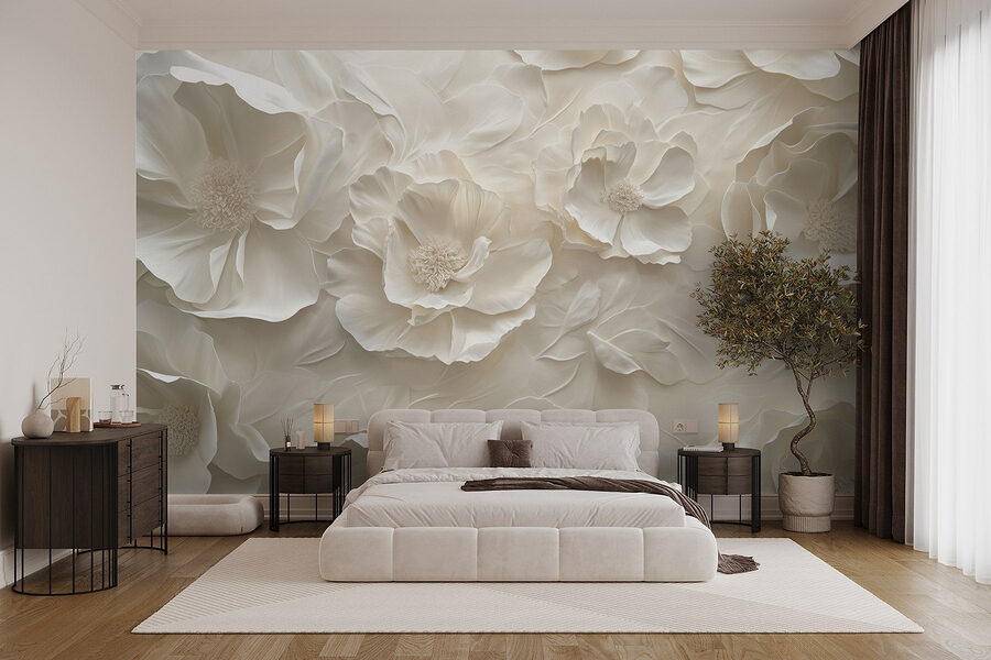 Odmień każdą przestrzeń dzięki tej oszałamiającej tapecie ściennej “Białe kwiaty”. Wyobraź sobie, jak wchodzisz do pokoju owiniętego miękkim uściskiem delikatnych kwiatów. Piwonie i róże wydają się szeptać świeże początki, zapraszając ciepło do domu. To jak przeniesienie ogrodu do domu, bez uciążliwych owadów i potrzeby podlewania.
