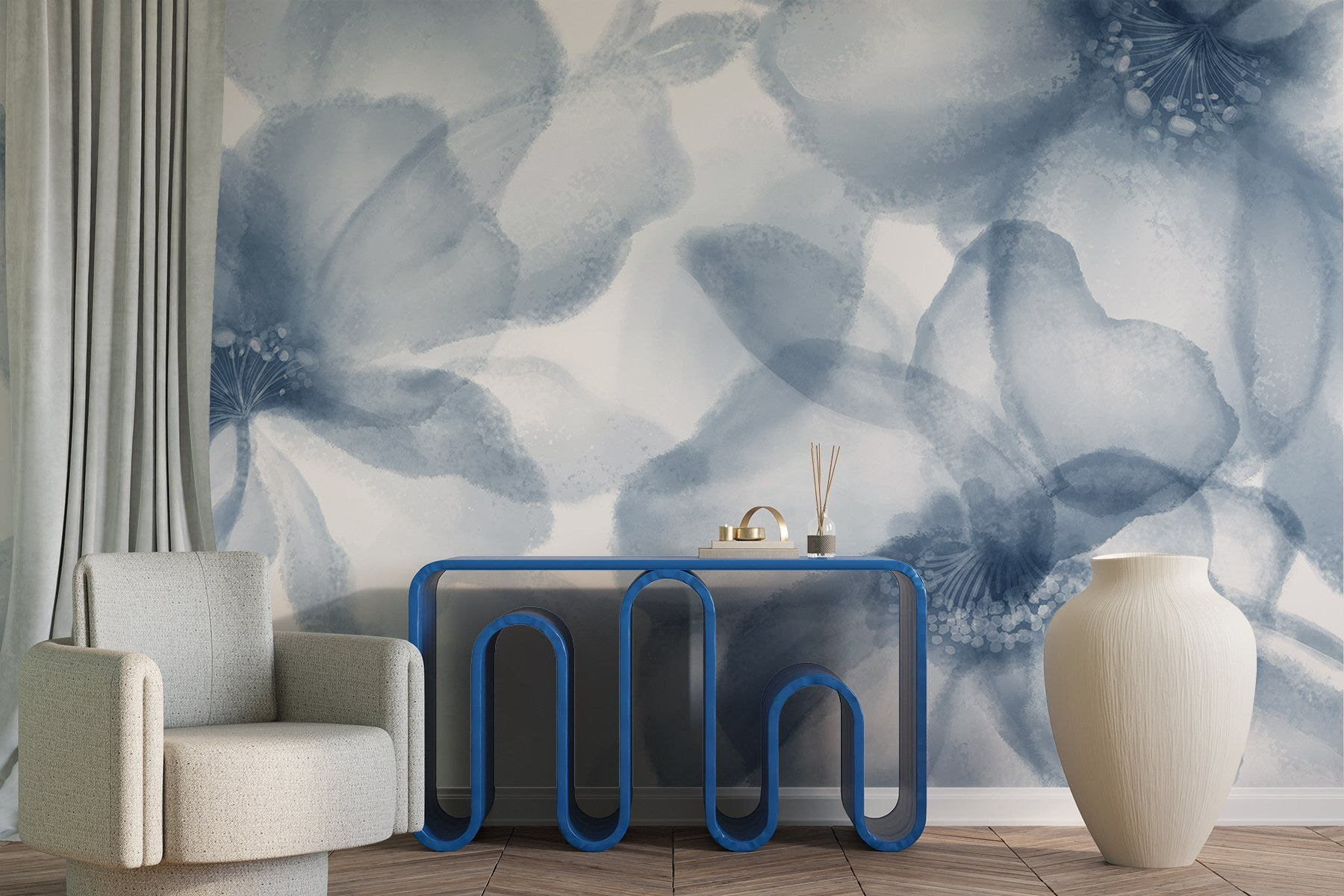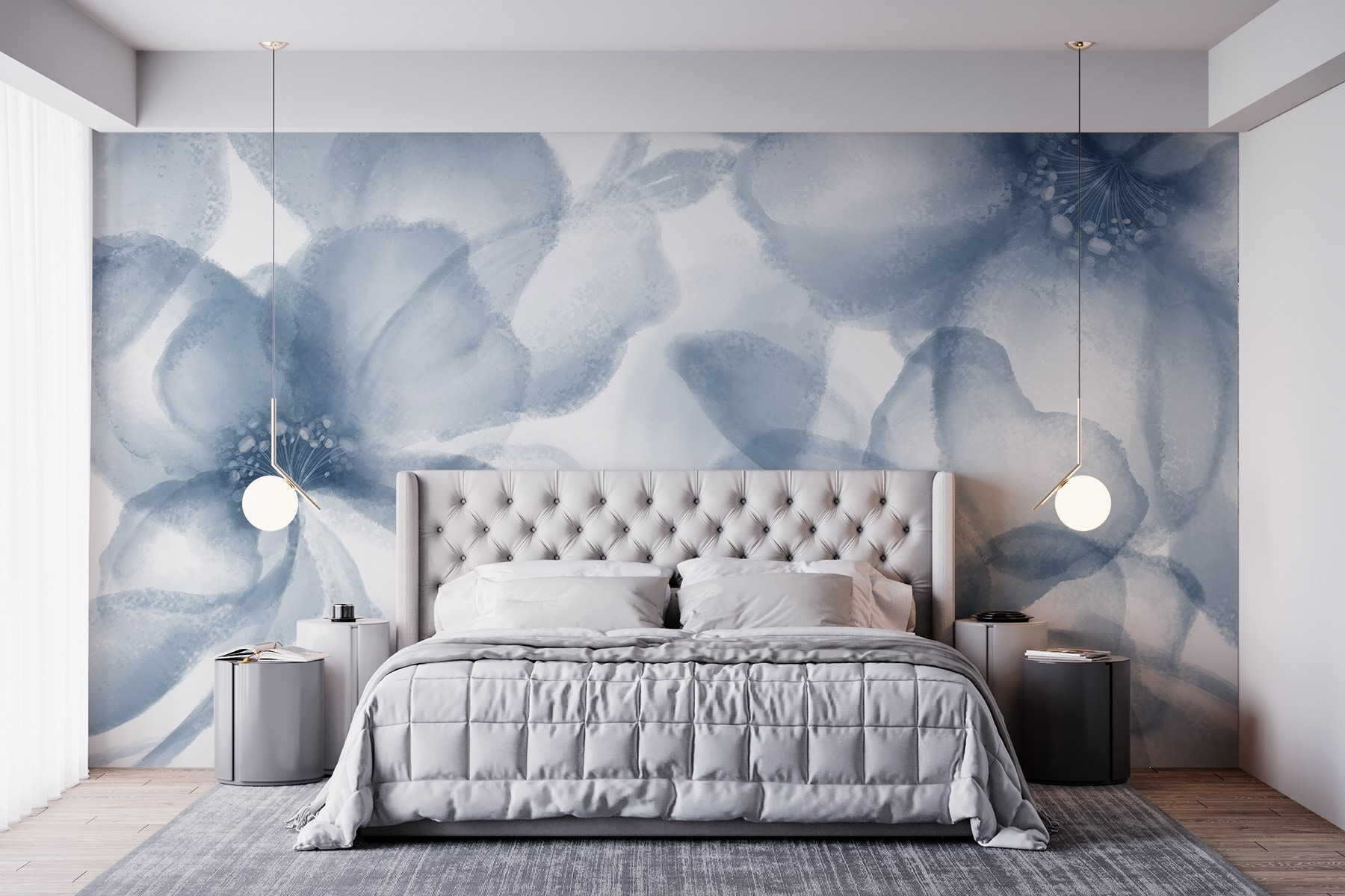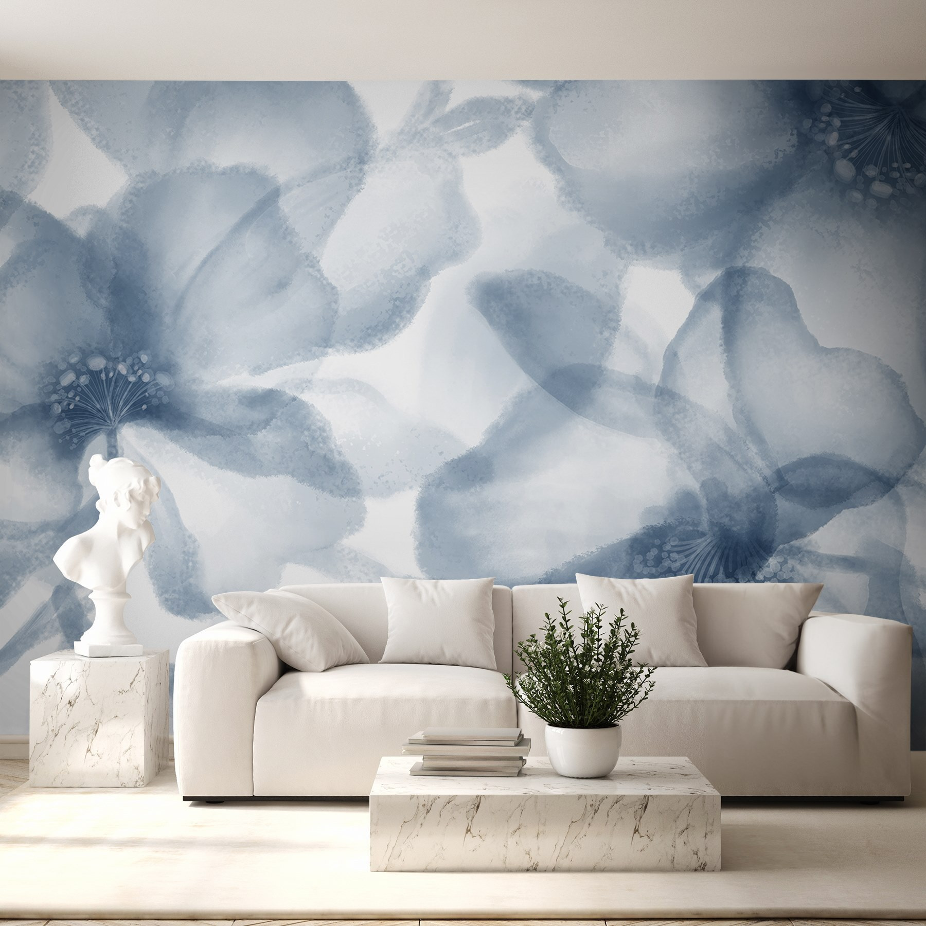 Wyobraź sobie, że wchodzisz do pokoju i czujesz się, jakbyś wszedł do spokojnego ogrodu, a wszystko to dzięki tej oszałamiającej fototapecie. Dzięki delikatnym akwarelowym kwiatom tańczącym na czystym białym tle, jest to jak powiew świeżego powietrza – dosłownie! Delikatne niebieskie odcienie wprowadzają uspokajający nastrój, dzięki czemu idealnie nadaje się do przytulnego salonu lub spokojnej sypialni. Łatwo jest zatracić się w sennych płatkach i zapomnieć o świecie na zewnątrz. Wystarczy wyobrazić sobie wylegiwanie się z książką, światło słoneczne wpadające do środka i te kwiaty delikatnie zachęcające do relaksu. To prosty sposób na przekształcenie każdej przestrzeni w małą oazę szczęścia!