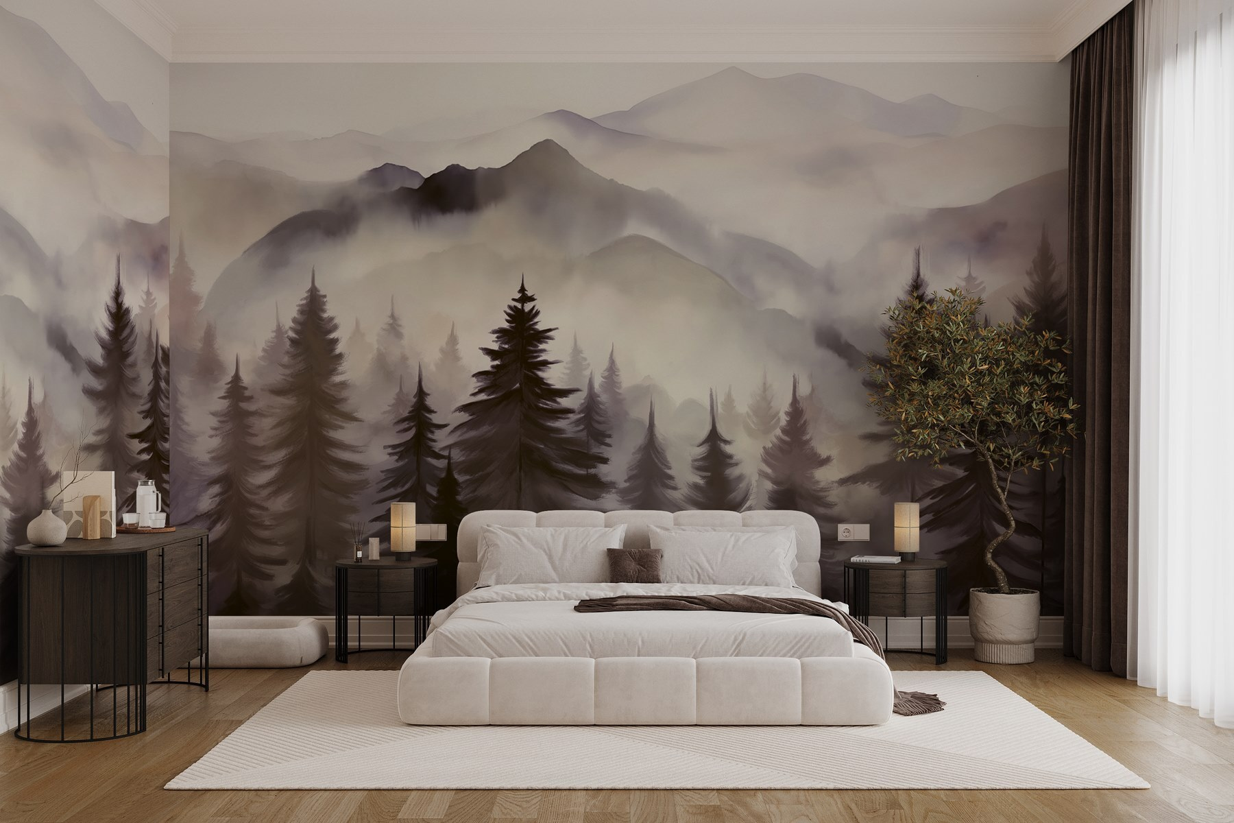 Przekształć dowolny pokój w spokojną ucieczkę dzięki tej oszałamiającej fototapecie ściennej z sennym krajobrazem gór i drzew. Wyobraź sobie: wchodzisz i zamiast patrzeć na gładkie ściany, jesteś witany przez mglistą górską scenę, która szepcze przygodę. Niezależnie od tego, czy jest to uspokajająca zieleń, czy delikatne szarości, które przyciągają wzrok, ta fototapeta wprowadza ten spokojny, leśny klimat do wnętrza. To jak mini-wakacje na ścianie – idealne do marzeń. Kto nie chciałby być otoczony takim pięknem? Chwyć więc filiżankę herbaty, oprzyj się wygodnie i pozwól, by góry zabrały Cię w podróż. Idealny dla miłośników przyrody i każdego, kto pragnie odrobiny świeżego powietrza w domu!