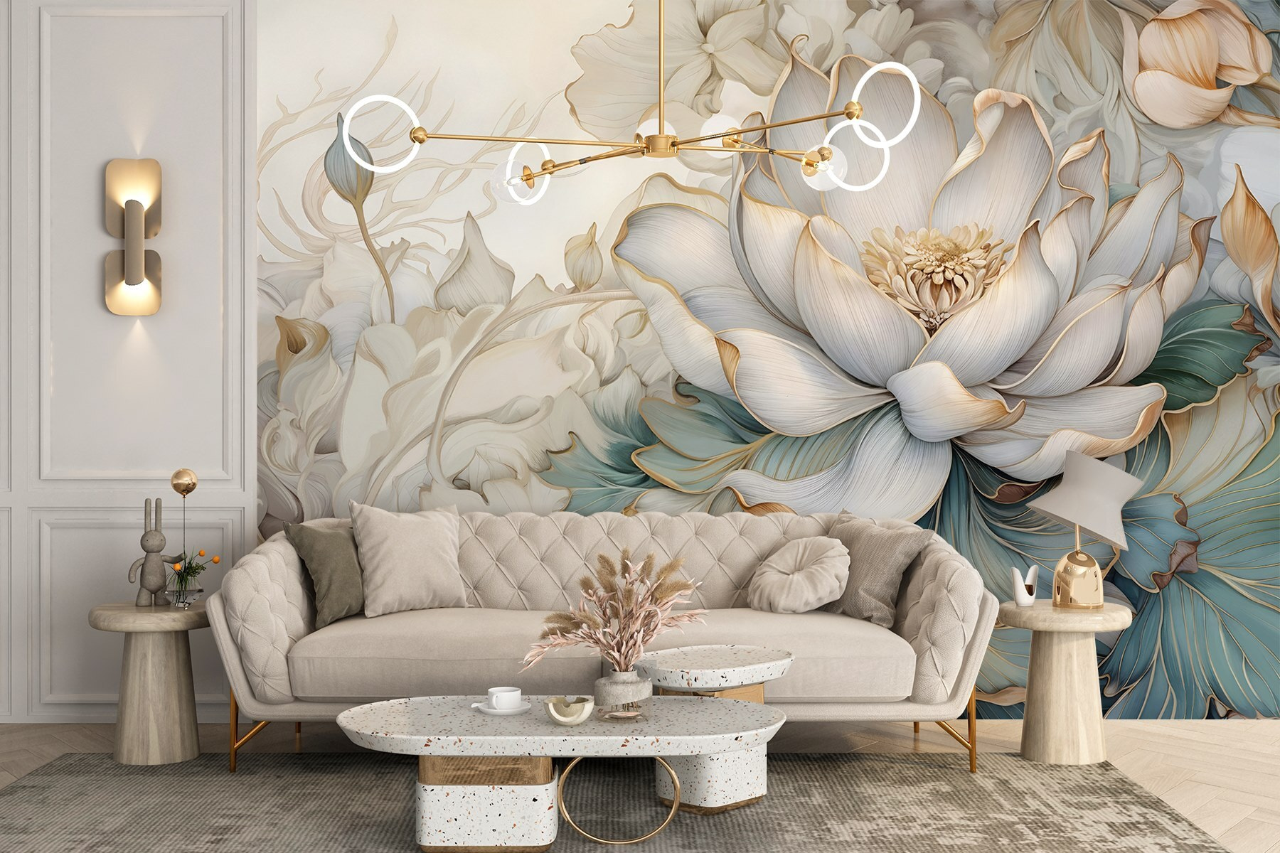 Wyobraź sobie, że wchodzisz do spokojnego ogrodu wprost z własnego salonu. “Delicate Petals in Soft Hues” to nie tylko fototapeta; to jak delikatny uścisk dla twoich ścian. Dzięki delikatnym akwarelowym kwiatom, dzieło to wprowadza chłodną, uspokajającą atmosferę, która tańczy między elegancją a ciepłem. Wyobraź sobie zwinięcie się w kłębek z dobrą książką, otoczone tymi spokojnymi płatkami, które szepczą sekrety wiosennych dni i słonecznej bryzy. Idealna do przytulnego kąta lub jasnej, przestronnej przestrzeni – ta fototapeta naprawdę robi wrażenie. To sztuka, która jest żywa, zachęcająca i idealna dla każdego, kto kocha odrobinę natury we wnętrzach!
