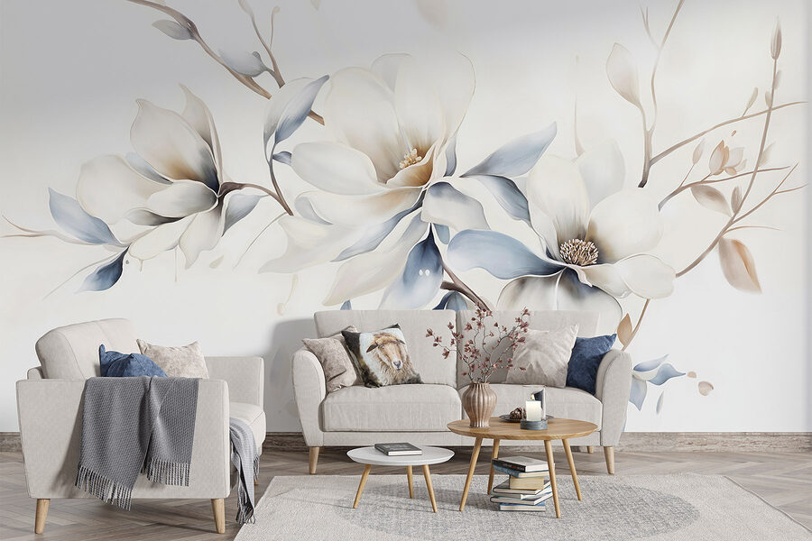 Przekształć swoją przestrzeń w spokojną przystań dzięki tej efektownej fototapecie ściennej z delikatnymi kwiatami na miękkim białym tle. To tak, jakbyś miał delikatną wiosenną bryzę w swoim salonie, gotową poprawić nastrój każdego dnia tygodnia. Wyobraź sobie, że popijasz poranną kawę, światło słoneczne wpada do środka, a te piękne kwiaty sprawiają, że wszystko wydaje się nieco bardziej żywe. Akwarelowy styl dodaje marzycielskiego akcentu – prawie tak, jakby kwiaty były na skraju rozkwitu tuż za ścianą. Idealna do rozjaśnienia sypialni lub zaakcentowania przytulnego kącika do czytania, ta fototapeta zaprasza ciepło, elegancję i odrobinę natury do twojego domu. Kto by pomyślał, że ściany mogą przynieść tyle radości?