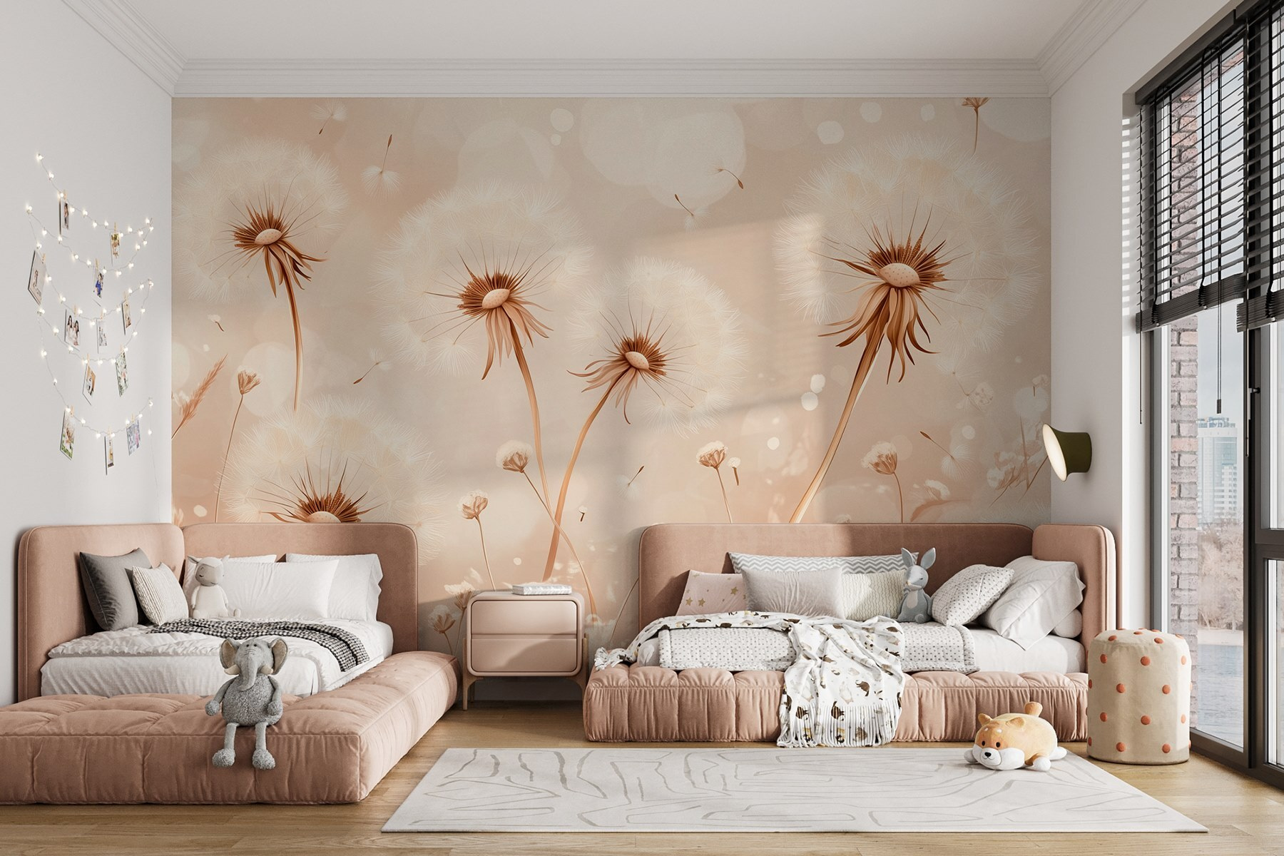 Przekształć dowolny pokój w spokojną ucieczkę dzięki tej oszałamiającej fototapecie “Delikatne mlecze w delikatnych odcieniach”. Wyobraź sobie, że wchodzisz do pomieszczenia, w którym czujesz się jak na delikatnej bryzie w ciepły wiosenny dzień. Te kapryśne mlecze, z ich delikatnymi tonami i marzycielskim designem, tworzą spokojną i zachęcającą atmosferę. Idealne do przytulnego kącika do czytania lub do ożywienia kreatywnego miejsca pracy, przypominają nam o tym, by cieszyć się ulotnymi chwilami życia – jak wtedy, gdy mniszek lekarski znalazł się na twoim kocu piknikowym. Delikatna, ponadczasowa i nieco figlarna, ta fototapeta z pewnością wywoła uśmiech każdego dnia!