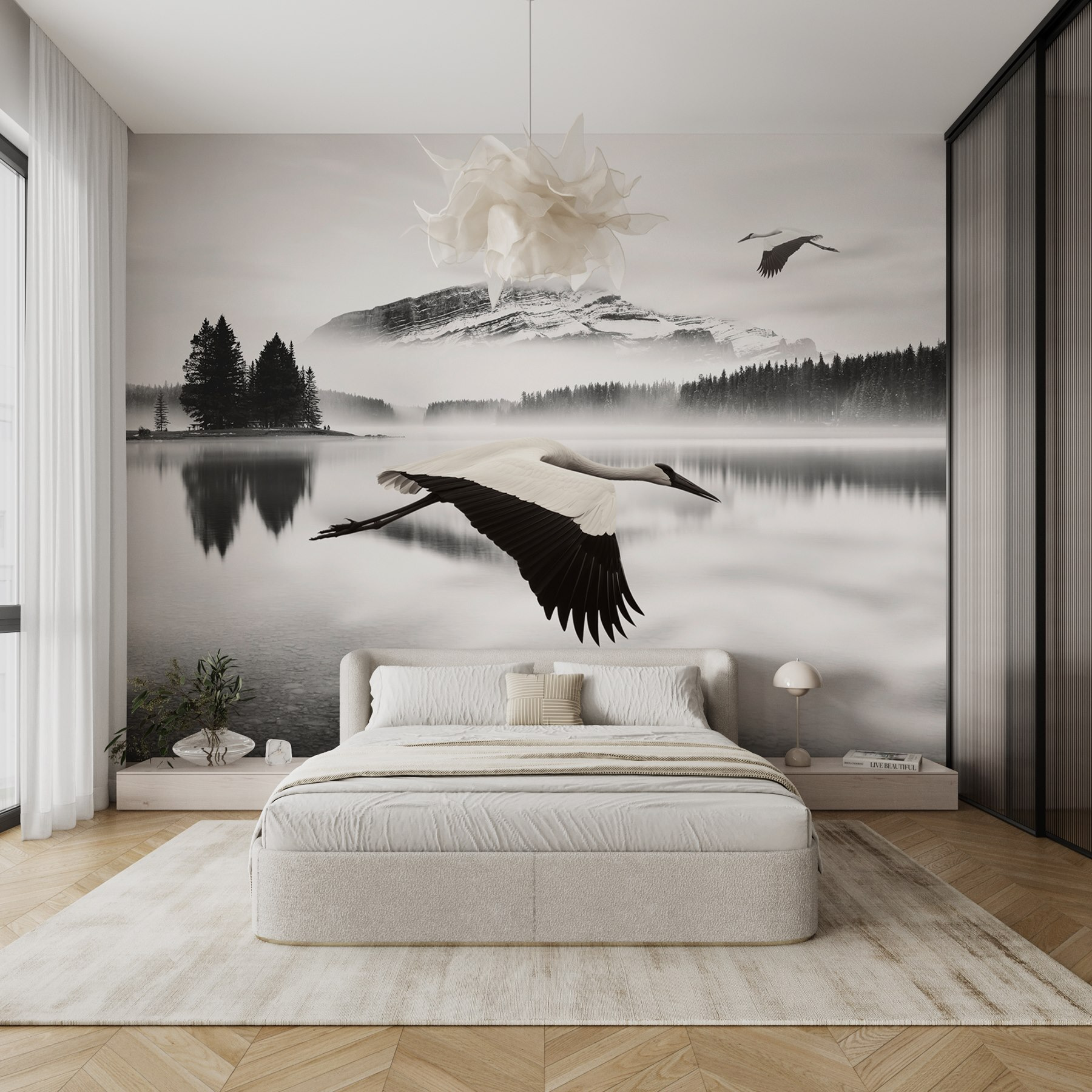Odmień swoją przestrzeń dzięki tej zapierającej dech w piersiach fototapecie ściennej “Ptak lecący nad wodą”. Wyobraź sobie spokojny krajobraz, w którym wdzięczny żuraw szybuje przez zamglone jezioro, promieniując spokojem. To jak przeniesienie kawałka natury do wnętrza – nie wymaga zabłoconych butów ani sprayu na owady! Idealna na pustą ścianę, która błaga o osobowość, ta fototapeta szepcze spokój do twojego gorączkowego dnia.