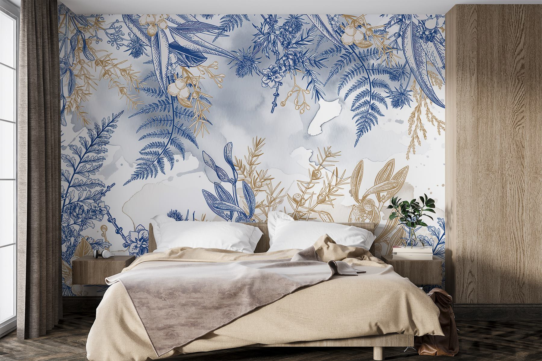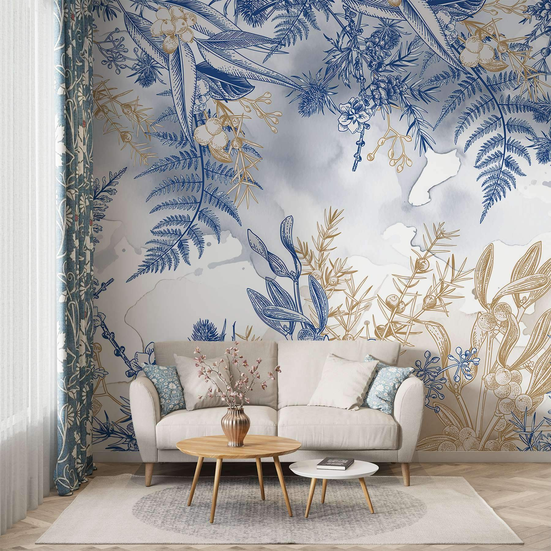 Odmień swoją przestrzeń dzięki tej oszałamiającej fototapecie ściennej z zachwycającym niebiesko-białym kwiatowym wzorem. Wyobraź sobie, że każdego dnia wchodzisz do słonecznego ogrodu dzięki misternym wzorom, które wprowadzają naturę prosto do twojego domu. Efekt akwareli dodaje sennej atmosfery, idealnej do stworzenia kojącej ucieczki – pomyśl o leniwych niedzielnych porankach z filiżanką herbaty w ręku. To jak posiadanie dzieła sztuki, które zaprasza do relaksu. Ozdobienie ścian tą fototapetą to nie tylko dekoracja; to doświadczenie. Przygotuj się na ponowne zakochanie się w swoich ścianach!
