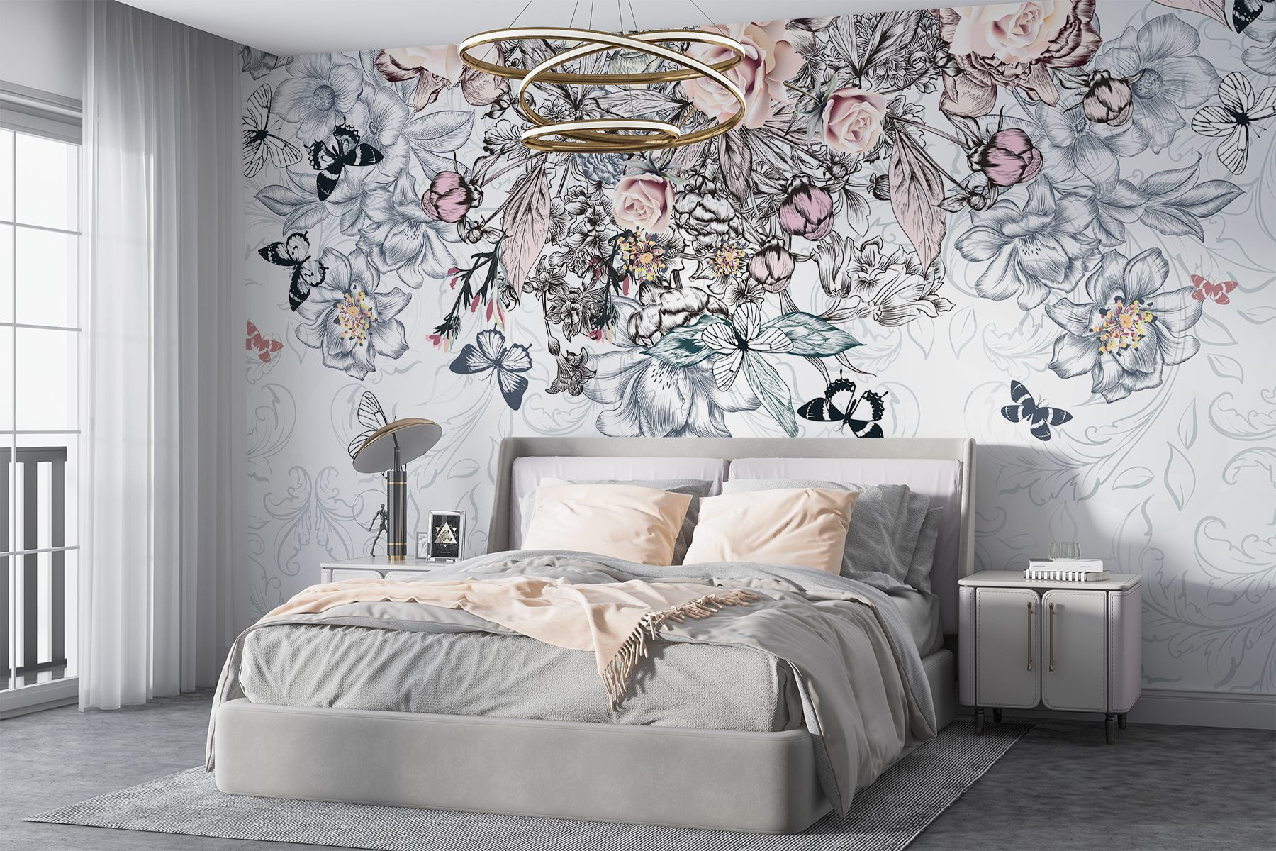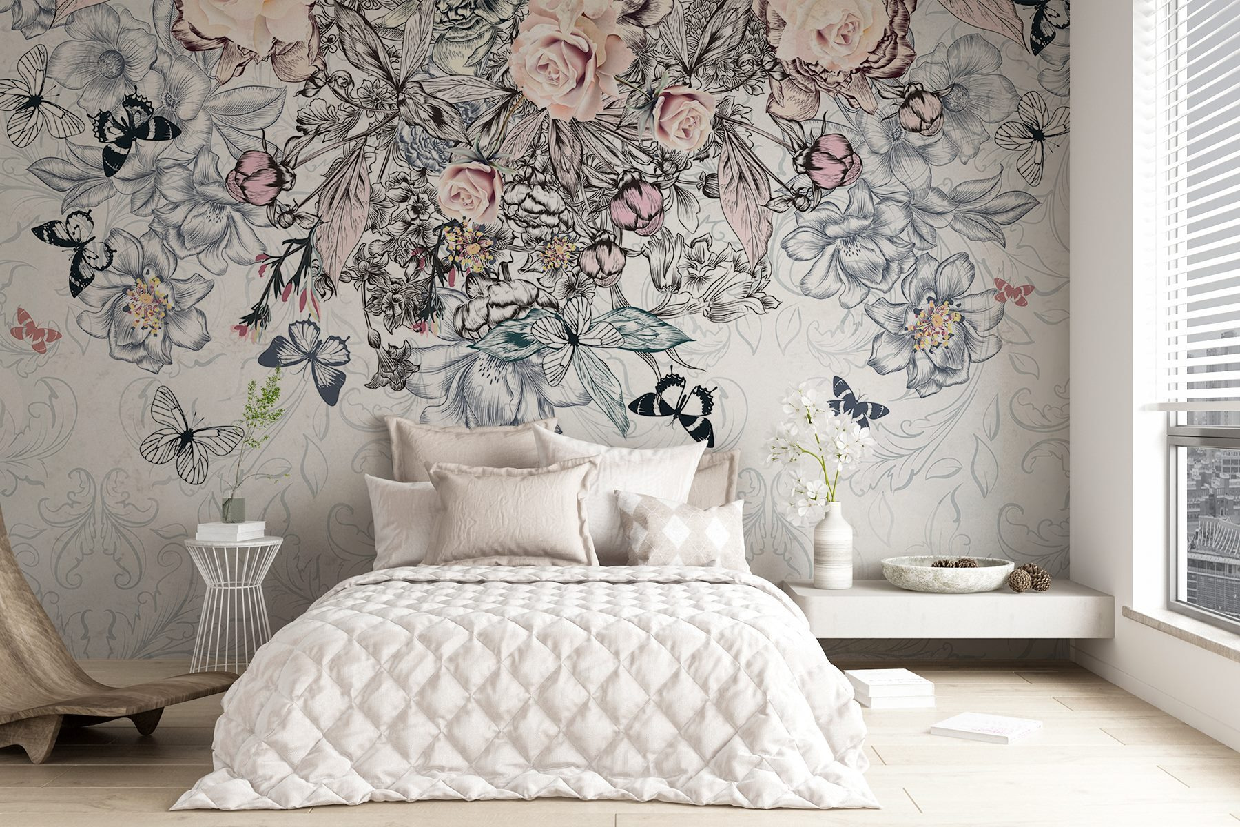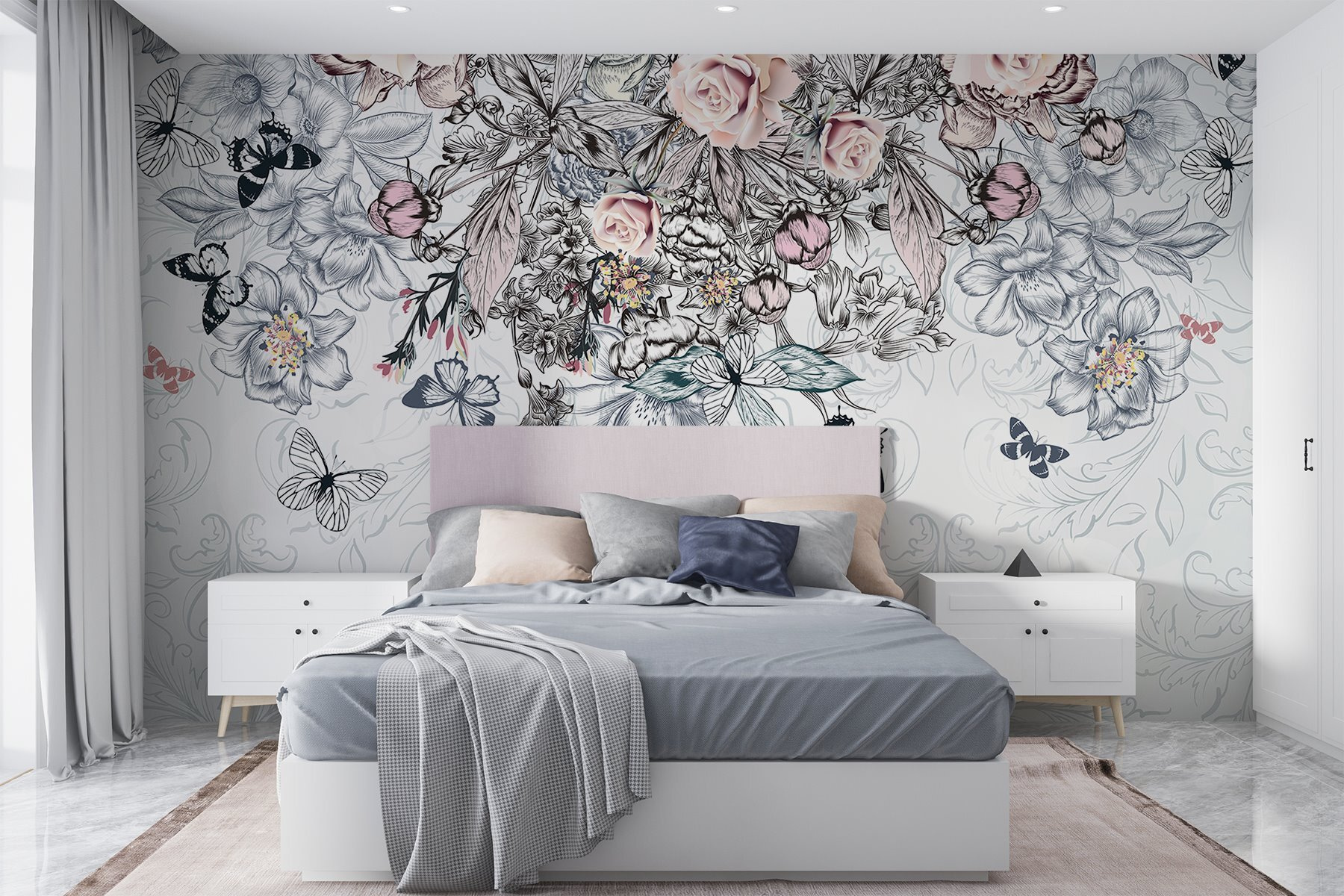 Przekształć swoją przestrzeń w tętniącą życiem przystań dzięki tej urzekającej fototapecie ściennej, przedstawiającej oszałamiającą mieszankę kwiatów i motyli. To jak kapryśny ogród, w którym kwiaty i delikatne skrzydła tańczą razem, tworząc zachęcającą atmosferę. Wyobraź to sobie: wchodzisz do pokoju i czujesz natychmiastowe ożywienie, jakby wiosna przybyła wcześnie specjalnie dla ciebie. Delikatne kolory i urocze detale wywołują radość i inspirują do marzeń. Idealna do przytulnego kącika do czytania lub wesołej kuchni, ta fototapeta przenosi naturę do wnętrza, szepcząc słodkie nuty relaksu i piękna. Kto nie chciałby odrobiny lekkiej magii w swoim domu?