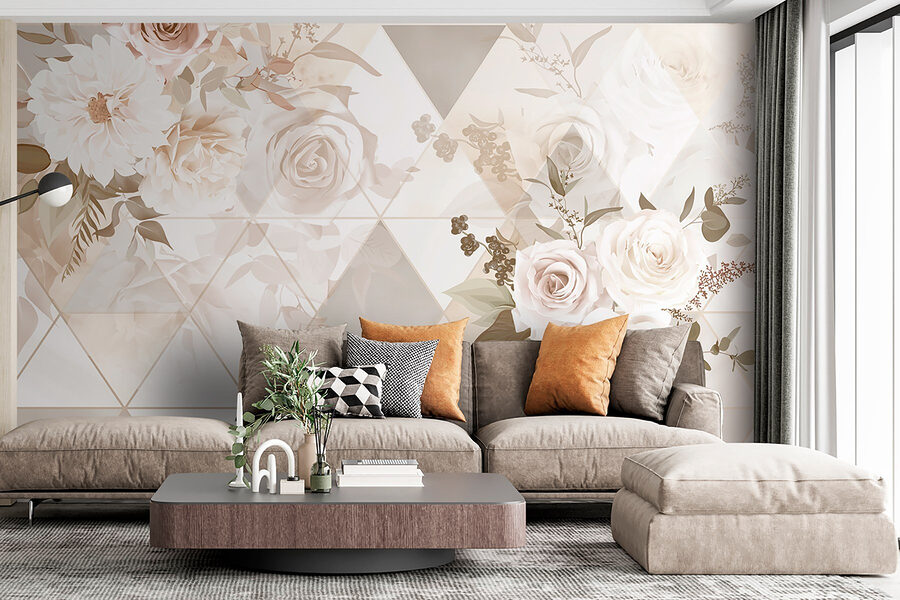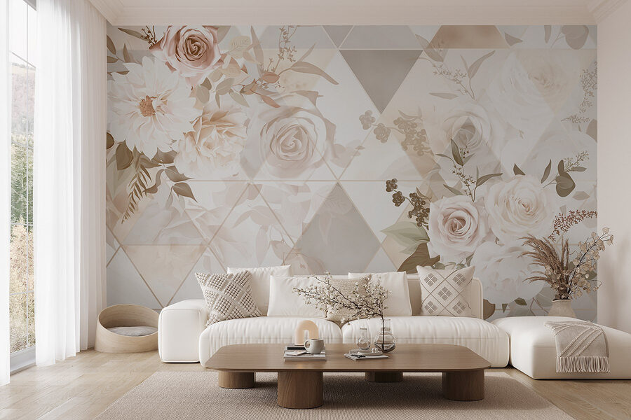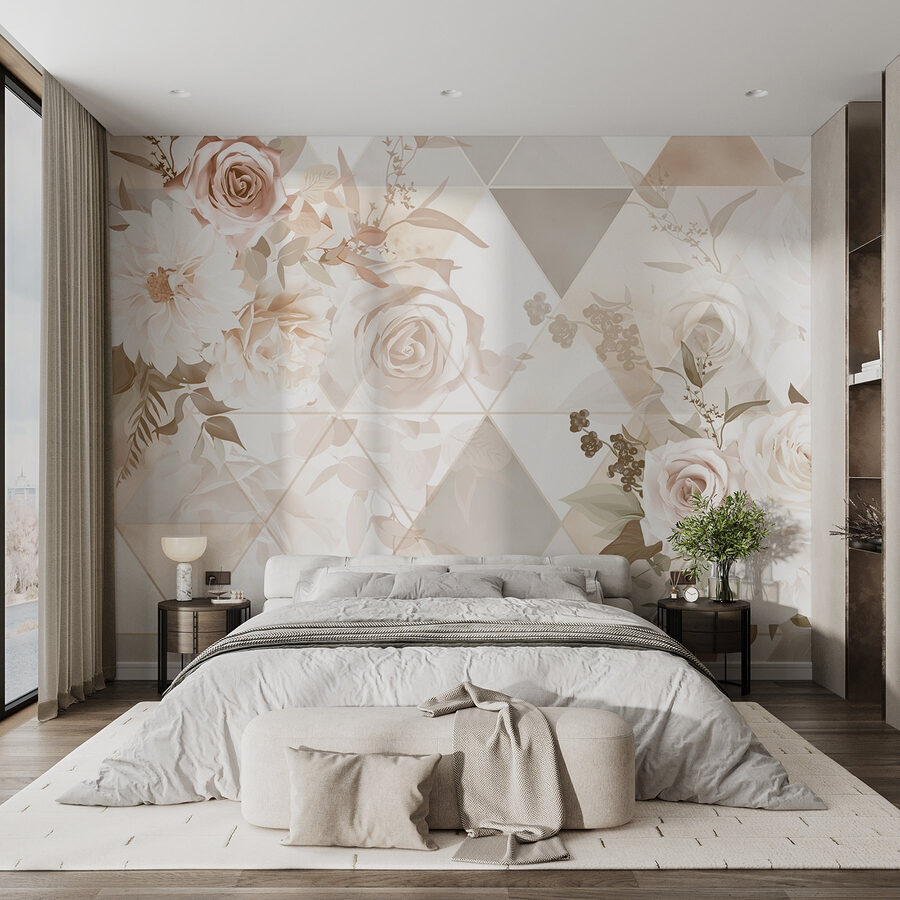 Przekształć każdy pokój w spokojną oazę dzięki tej oszałamiającej fototapecie ściennej z wdzięcznymi kwiatami i eleganckimi trójkątami. To jak przeniesienie ogrodu do domu, ale bez kłopotliwego podlewania! Wyobraź sobie, że popijasz poranną kawę, wygrzewając się w delikatnych kolorach piwonii i róż – to totalna atmosfera. Ta fototapeta zapewnia idealną równowagę między elegancją i nowoczesnym stylem, dzięki czemu wyróżnia się w salonach lub przytulnych zakątkach. Jest jak delikatny uścisk dla twoich ścian. Śmiało, pozwól swojej przestrzeni rozkwitnąć! Kto nie chciałby odrobiny piękna natury w swoim domu?