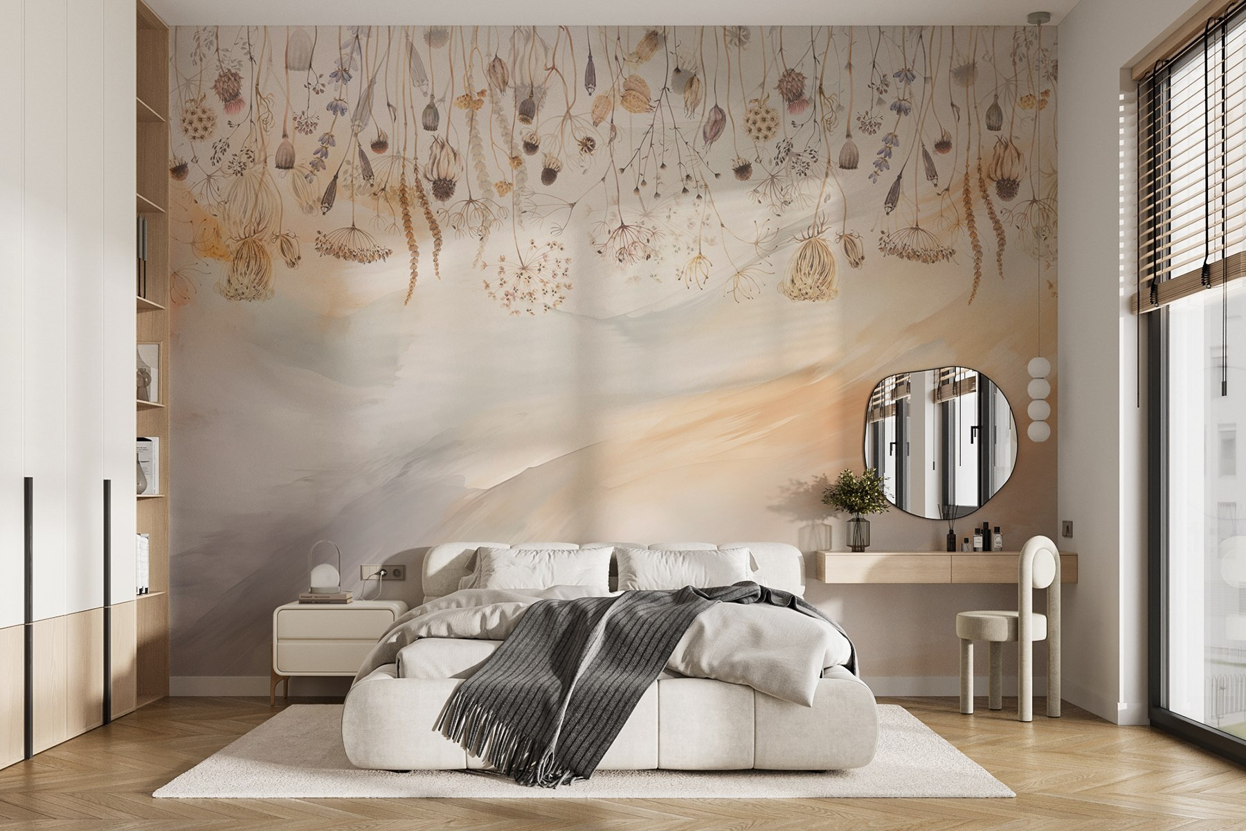 Odmień swoją przestrzeń dzięki tej czarującej fototapecie ściennej z suszonymi kwiatami i roślinami, gdzie sztuka łączy się ze spokojem. Wyobraź sobie, że każdego dnia wkraczasz do spokojnego miejsca; delikatne akwarelowe odcienie rozlewają się po ścianach, tworząc spokojne tło, które szepcze o pięknie natury. Idealna do przytulnego kącika do czytania lub inspirującego miejsca do pracy, ta fototapeta zachęca do marzeń i delikatnych rozmów. To jak posiadanie sekretnego ogrodu wewnątrz domu, z kwiatami, które nigdy nie więdną. Wyobraź sobie, jak zwijasz się w kłębek z filiżanką herbaty, chłonąc uspokajające wibracje – błogie, prawda? Niech ta fototapeta wplecie swoją magię w twoje życie.