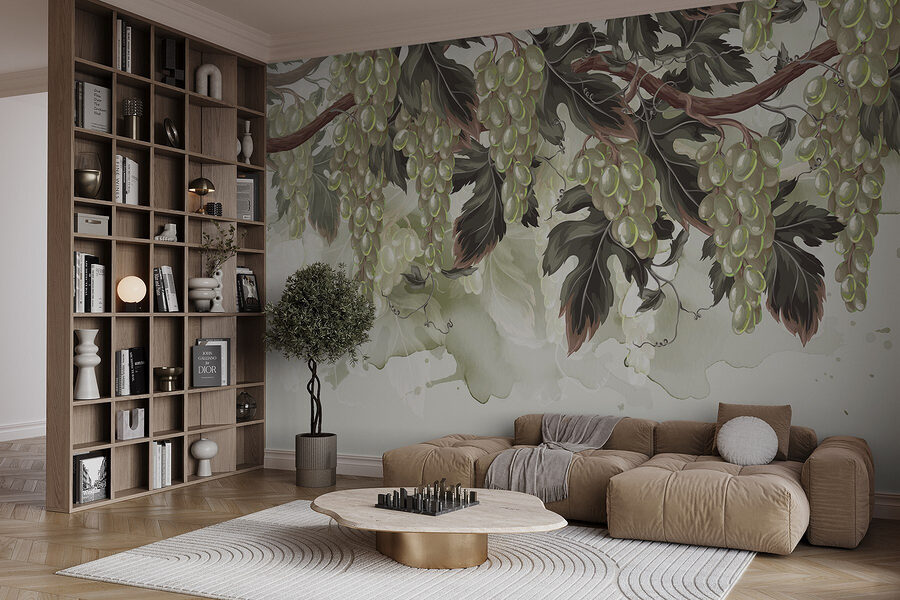 Zmień swoje wnętrze dzięki fototapecie, która sprawia wrażenie ucieczki do winnicy! „Kiść winogron na winorośli” wprowadza do Twojego domu uroczy liściasty motyw i nutkę płodności. Wyobraź sobie, że wchodzisz do pokoju i witają Cię te soczyste zielone kolory, sprawiając, że czujesz się, jakbyś właśnie wkroczył do słonecznego sadu. To jak posiadanie własnej oazy, gdzie powietrze pachnie delikatnie ziemią i słodyczą. Ta fototapeta, idealna do kuchni lub jadalni, może przywołać pyszne wspomnienia z wycieczek degustacyjnych lub leniwych letnich pikników. Tylko uważaj, bo może zainspirować do spontanicznych przyjęć z motywem winogron! Poza tym wszyscy uwielbiają dobre tematy do rozmów – ta fototapeta z pewnością sprawi, że goście będą podziwiać widok.