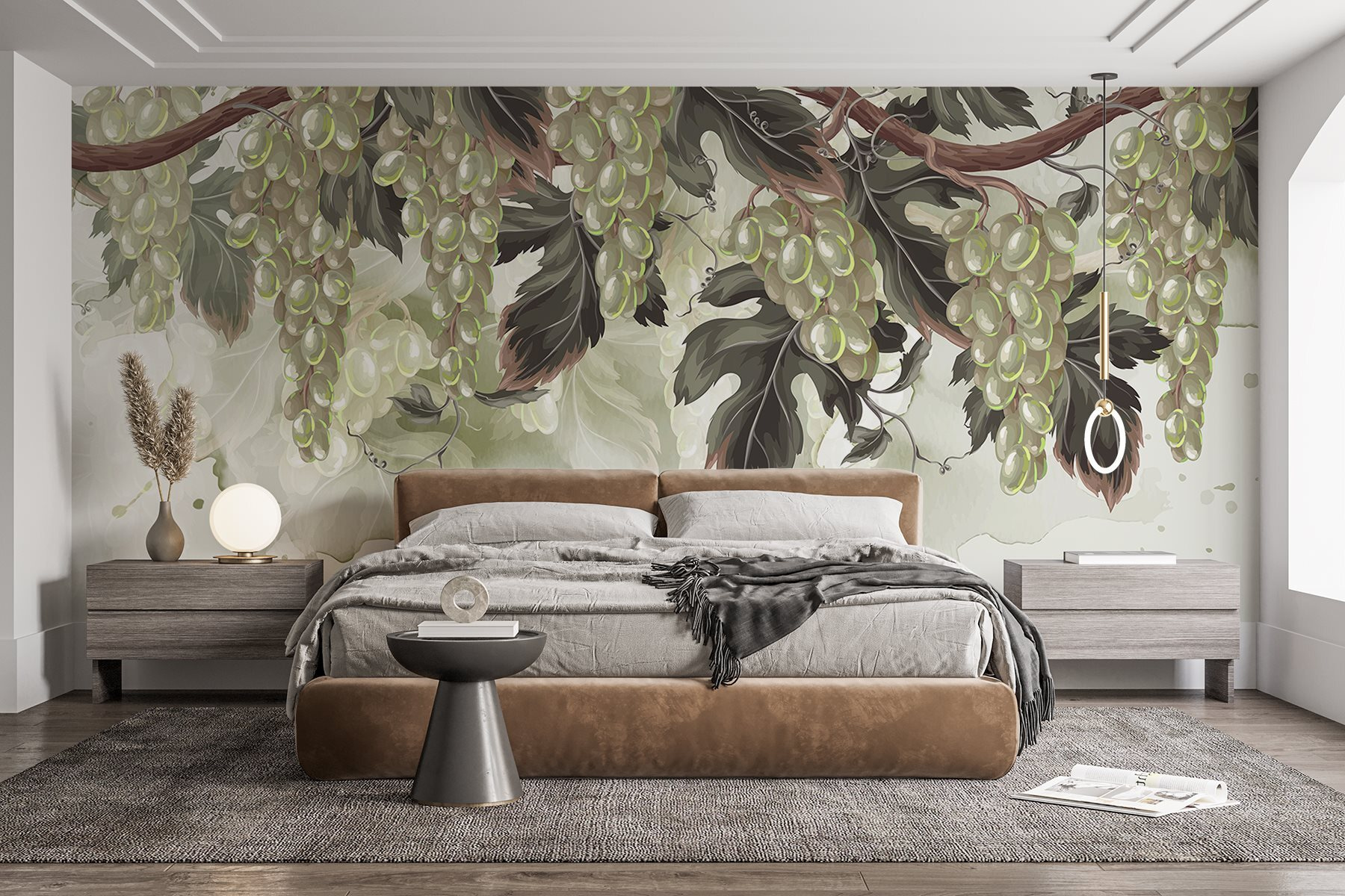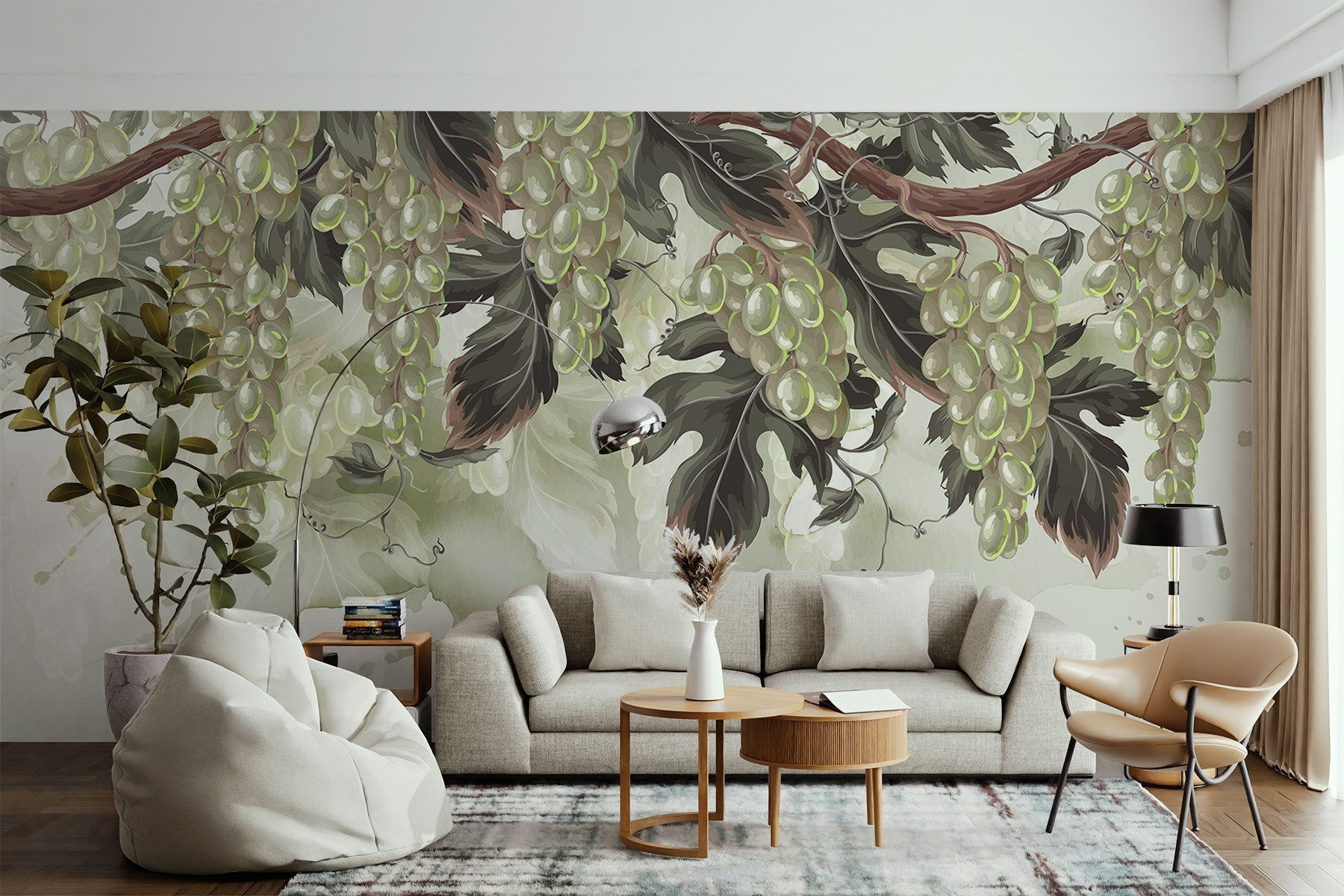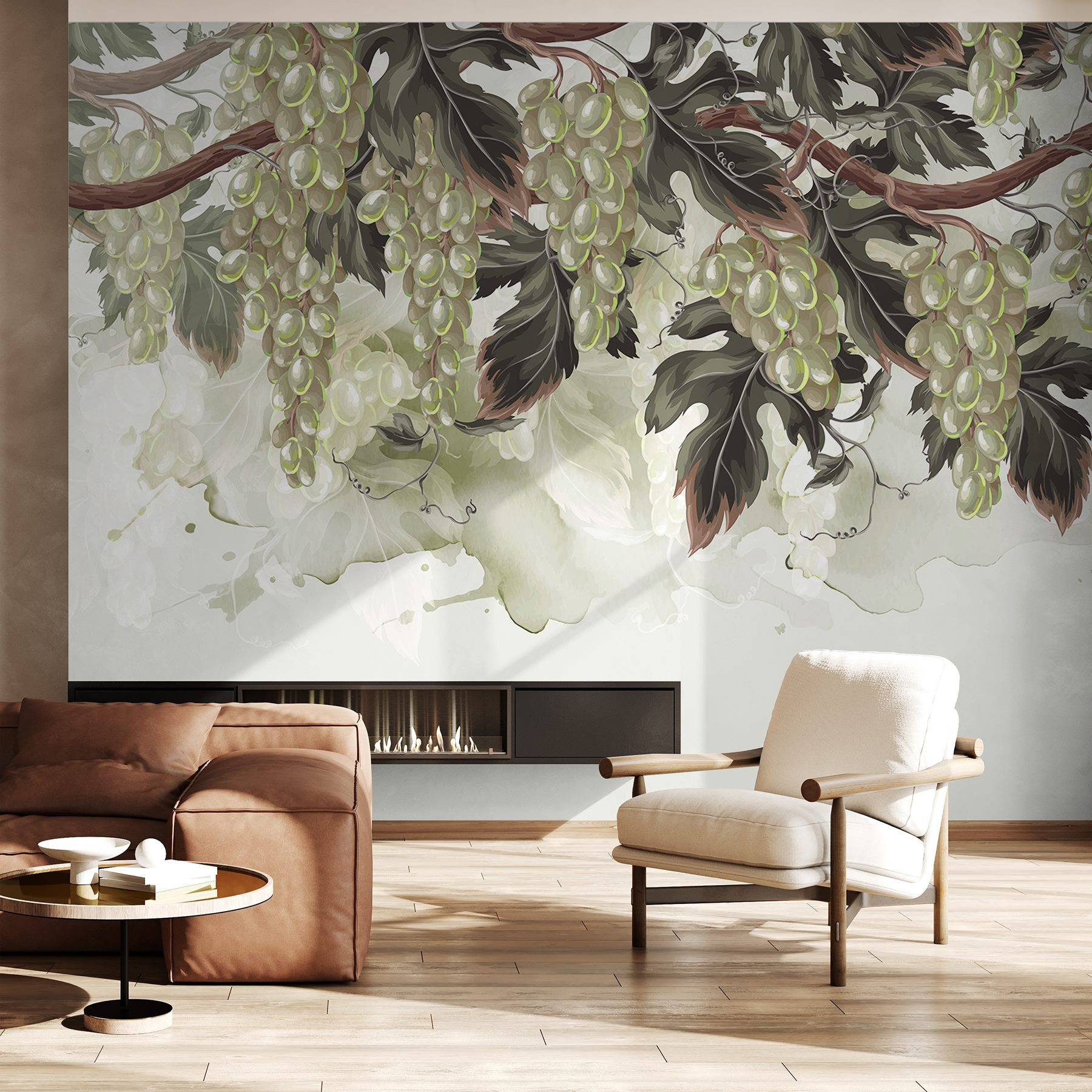 Zmień swoje wnętrze dzięki fototapecie, która sprawia wrażenie ucieczki do winnicy! „Kiść winogron na winorośli” wprowadza do Twojego domu uroczy liściasty motyw i nutkę płodności. Wyobraź sobie, że wchodzisz do pokoju i witają Cię te soczyste zielone kolory, sprawiając, że czujesz się, jakbyś właśnie wkroczył do słonecznego sadu. To jak posiadanie własnej oazy, gdzie powietrze pachnie delikatnie ziemią i słodyczą. Ta fototapeta, idealna do kuchni lub jadalni, może przywołać pyszne wspomnienia z wycieczek degustacyjnych lub leniwych letnich pikników. Tylko uważaj, bo może zainspirować do spontanicznych przyjęć z motywem winogron! Poza tym wszyscy uwielbiają dobre tematy do rozmów – ta fototapeta z pewnością sprawi, że goście będą podziwiać widok.