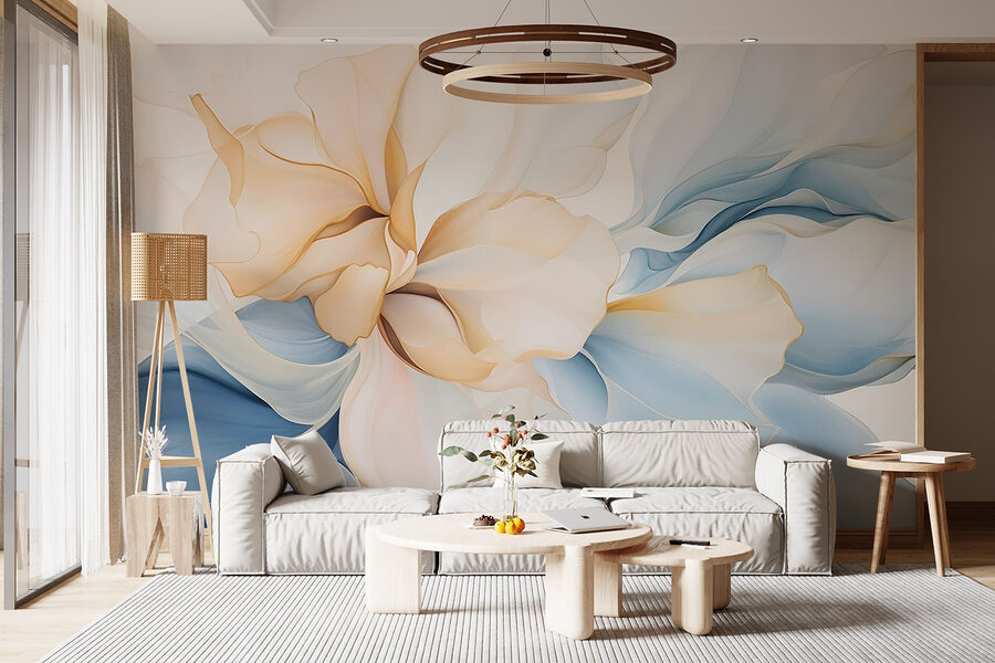 Zmień swoje wnętrze dzięki fototapecie „Delikatne odcienie w subtelnym kwiatowym tańcu”, która emanuje elegancją. Wyobraź sobie, że wchodzisz do pokoju i od razu czujesz się lepiej, jakby otaczała Cię delikatna bryza pastelowych płatków kwiatów. Ta fototapeta łączy w sobie delikatne odcienie błękitu i ciepłe kremowe kolory – niczym świeży wiosenny dzień uchwycony na ścianie. Idealnie nadaje się do przytulnego kącika do czytania, a nawet do salonu, gdzie przyjaciele spotykają się i śmieją się przy kawie. To jak przeniesienie ogrodu do wnętrza, bez alergii. Niech te kwiatowe motywy stworzą spokojną atmosferę, wprowadzając spokój i kreatywność w każdym zakątku. Czy nie widzisz tego już teraz?