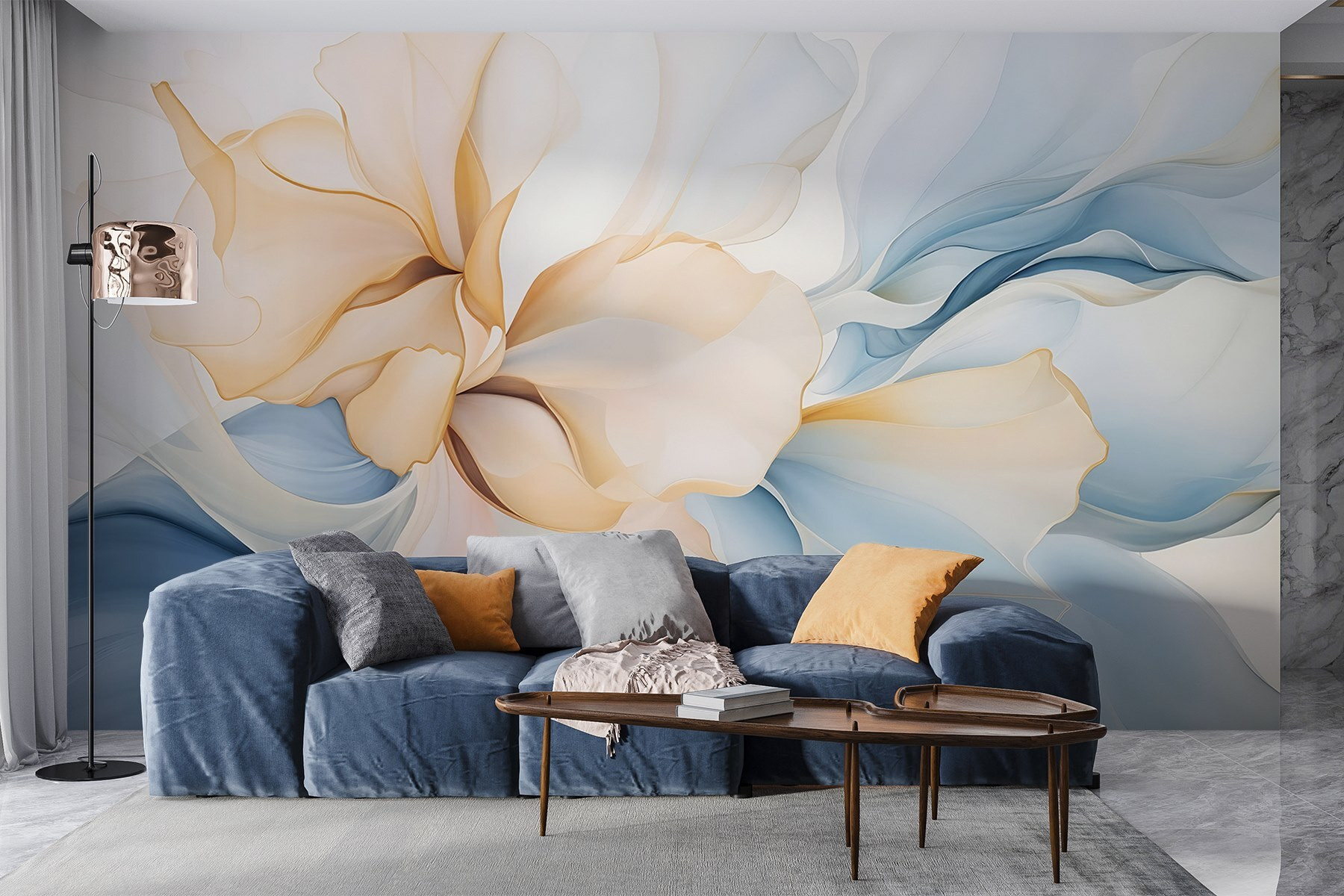 Zmień swoje wnętrze dzięki fototapecie „Delikatne odcienie w subtelnym kwiatowym tańcu”, która emanuje elegancją. Wyobraź sobie, że wchodzisz do pokoju i od razu czujesz się lepiej, jakby otaczała Cię delikatna bryza pastelowych płatków kwiatów. Ta fototapeta łączy w sobie delikatne odcienie błękitu i ciepłe kremowe kolory – niczym świeży wiosenny dzień uchwycony na ścianie. Idealnie nadaje się do przytulnego kącika do czytania, a nawet do salonu, gdzie przyjaciele spotykają się i śmieją się przy kawie. To jak przeniesienie ogrodu do wnętrza, bez alergii. Niech te kwiatowe motywy stworzą spokojną atmosferę, wprowadzając spokój i kreatywność w każdym zakątku. Czy nie widzisz tego już teraz?