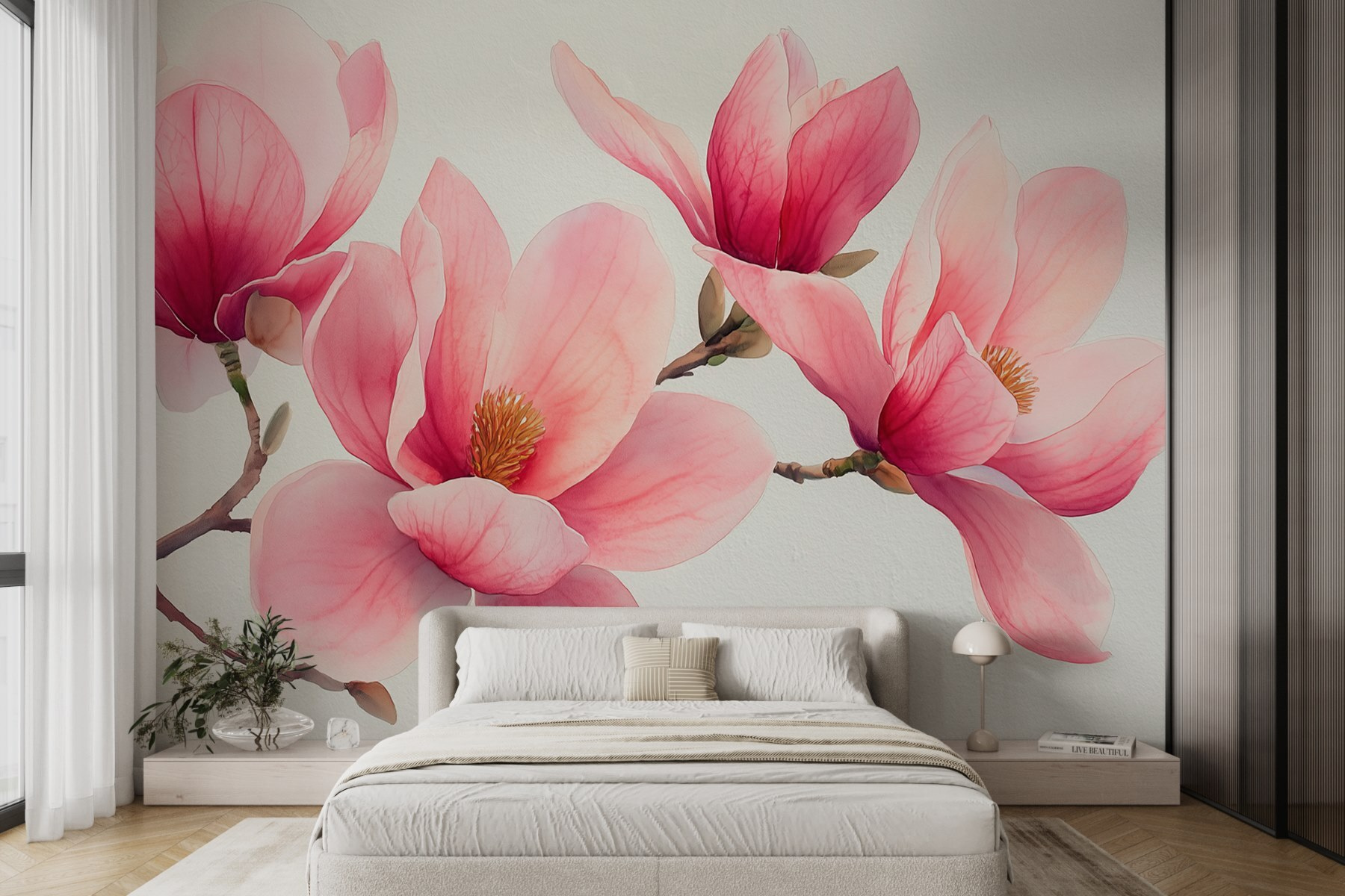 Transform your space with the enchanting “Group of Pink Flowers” mural. Imagine waking up to these breathtaking blooms, inviting a fresh burst of joy every morning. The soft pink hues dance effortlessly against the crisp backdrop, making it feel like springtime all year round. Perfect for a cozy living room or a dreamy bedroom, it’s like having a secret garden right on your wall. Picture friends sipping coffee, eyes glancing at the mural, and smiles all around. It’s a little slice of beauty that makes every day feel special. Who wouldn’t want that, right?