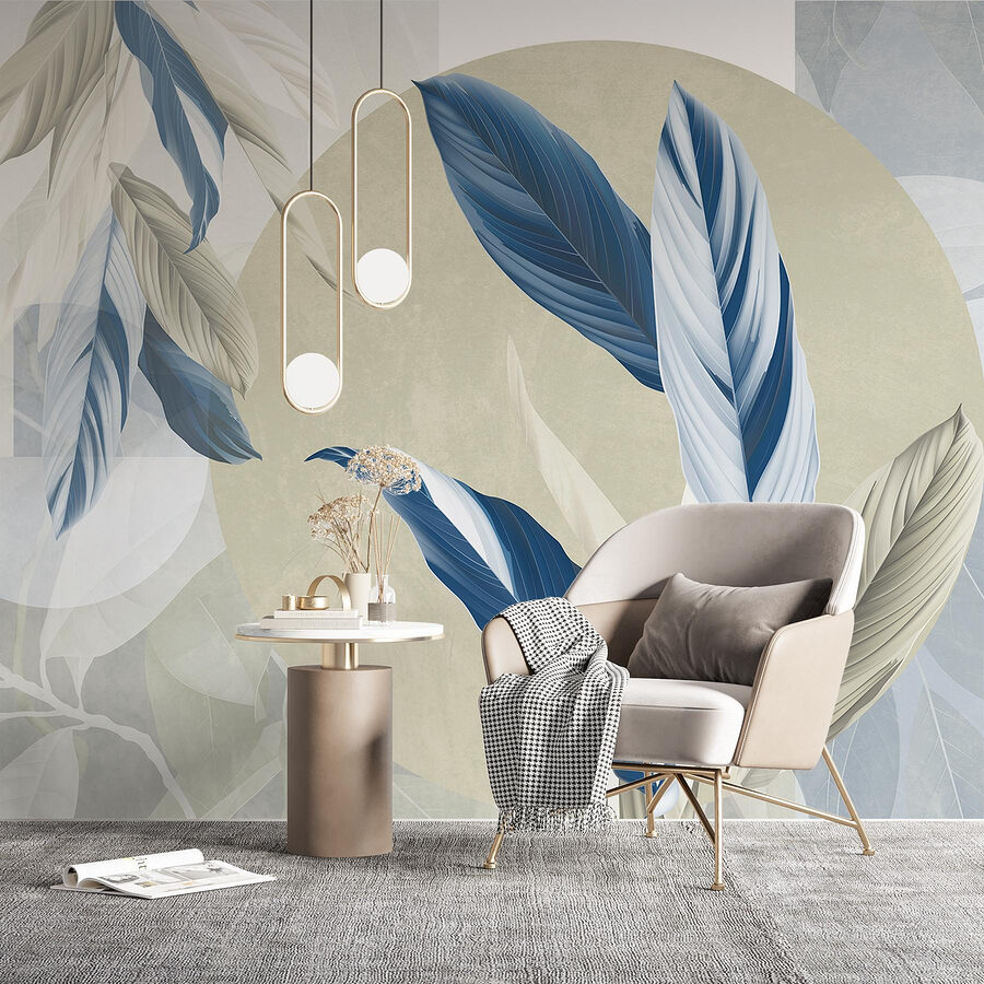 Przekształcenie ściany w spokojne miejsce ucieczki nie wymaga wysiłku dzięki “Nature’s Hues in Serene Arrangement”. Wyobraź to sobie – te wspaniałe liście delikatnie opadające w dół, plamy delikatnego błękitu i ziemistych odcieni wprowadzające uspokajający nastrój. To tak, jakby spokojny las zawędrował prosto do Twojego domu. Idealna do przytulnego kącika do czytania lub tej jednej ściany, która czuje się nieco samotna, ta fototapeta zaprasza do wyciszenia. Wyobraź sobie popijanie herbaty, owinięte w koc, podczas gdy świat na zewnątrz zanika. Dlaczego więc nie pozwolić, aby piękno natury ogarnęło twoją przestrzeń? Chwyć tę fototapetę i pozwól kreatywności rozkwitać z każdym spojrzeniem.