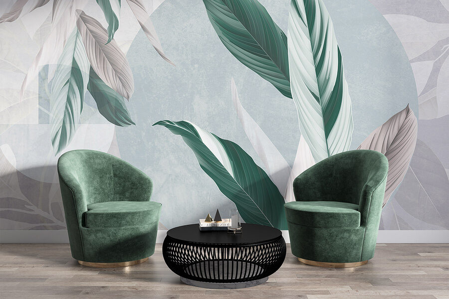 Zmień swoje wnętrze dzięki „Delikatnym wzorom liści natury”. Delikatne odcienie i eleganckie wzory liści tej fototapety wprowadzają spokojną atmosferę, sprawiając, że każde pomieszczenie staje się przytulnym ogrodowym zaciszem. Wyobraź sobie, że popijasz herbatę, wpatrując się w te uspokajające wzory – to jak mini wakacje we własnym domu! Delikatne odcienie zieleni i szarości pasują niemal wszędzie, dodając odrobinę natury bez konieczności pielęgnacji (żegnajcie, konewki!). Idealna do kącika do czytania, a nawet do tętniącego życiem salonu, przypomina, że piękno może być zarówno proste, jak i oszałamiające. Kto nie chciałby mieć takiego naturalnego uroku?