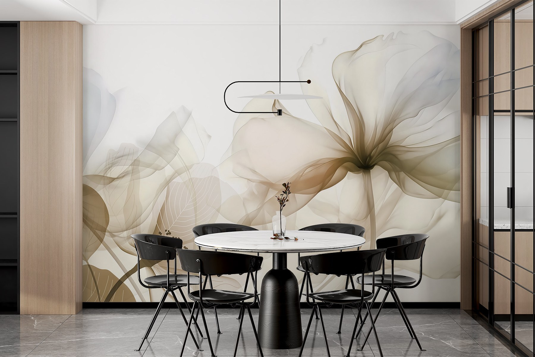 Wyobraź sobie, że wchodzisz do przestrzeni przypominającej galerię sztuki – właśnie to zapewnia ta fototapeta! „Delikatne odcienie piękna natury” oddają delikatną elegancję kwiatów, niczym łagodny szept samej natury. Wygląda to tak, jakby malarz nałożył delikatne kolory na ścianę, zachęcając wszystkich do zatrzymania się i wzięcia głębszego oddechu.