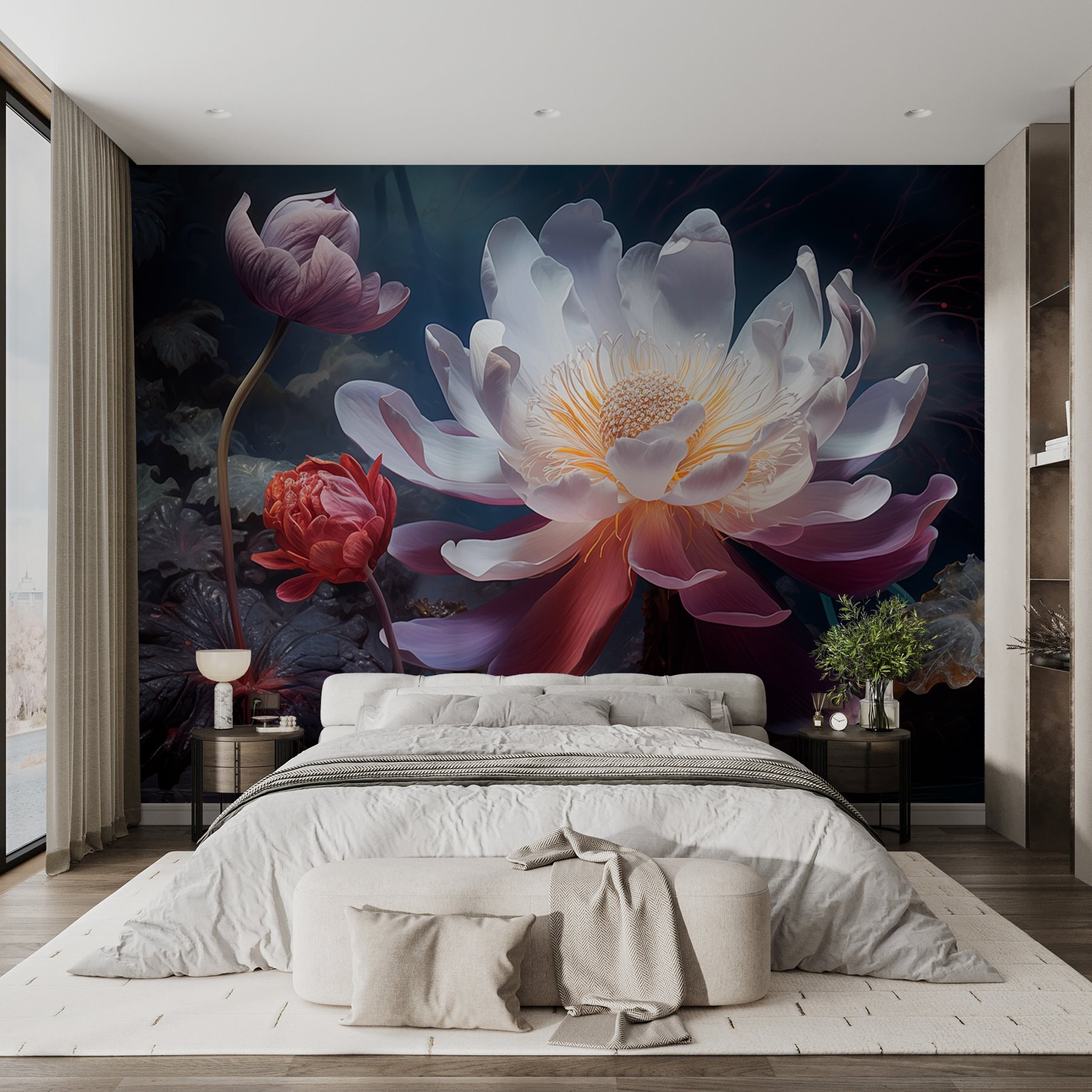 Transform any room into a serene escape with the “Delicate Blooms in Tranquil Waters” mural. Imagine walking into a space that feels like a secret garden, where oversized lotus flowers dance gently in soft hues, inviting calm vibes. It’s like those moments when you’re sipping tea by a beautiful lake, just taking it all in. Plus, you can pretty much hear the flowers whispering, “No more boring walls!” Perfect for a cozy nook or even that wall that always seems lonely. It’s more than decor; it’s a mood. Who knew that just adding a mural could spark a feeling of peace? Dive into tranquility—it’s waiting for you!