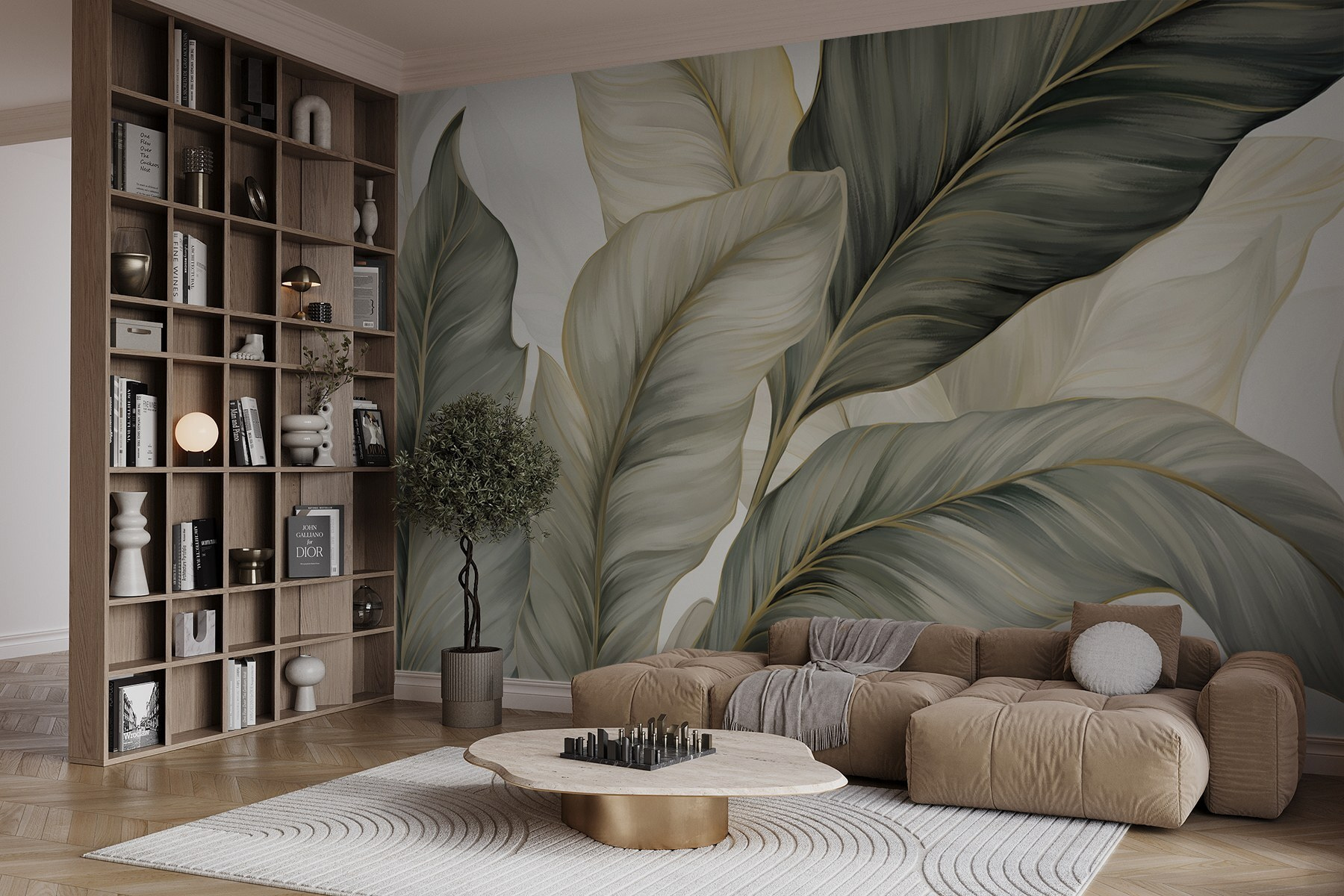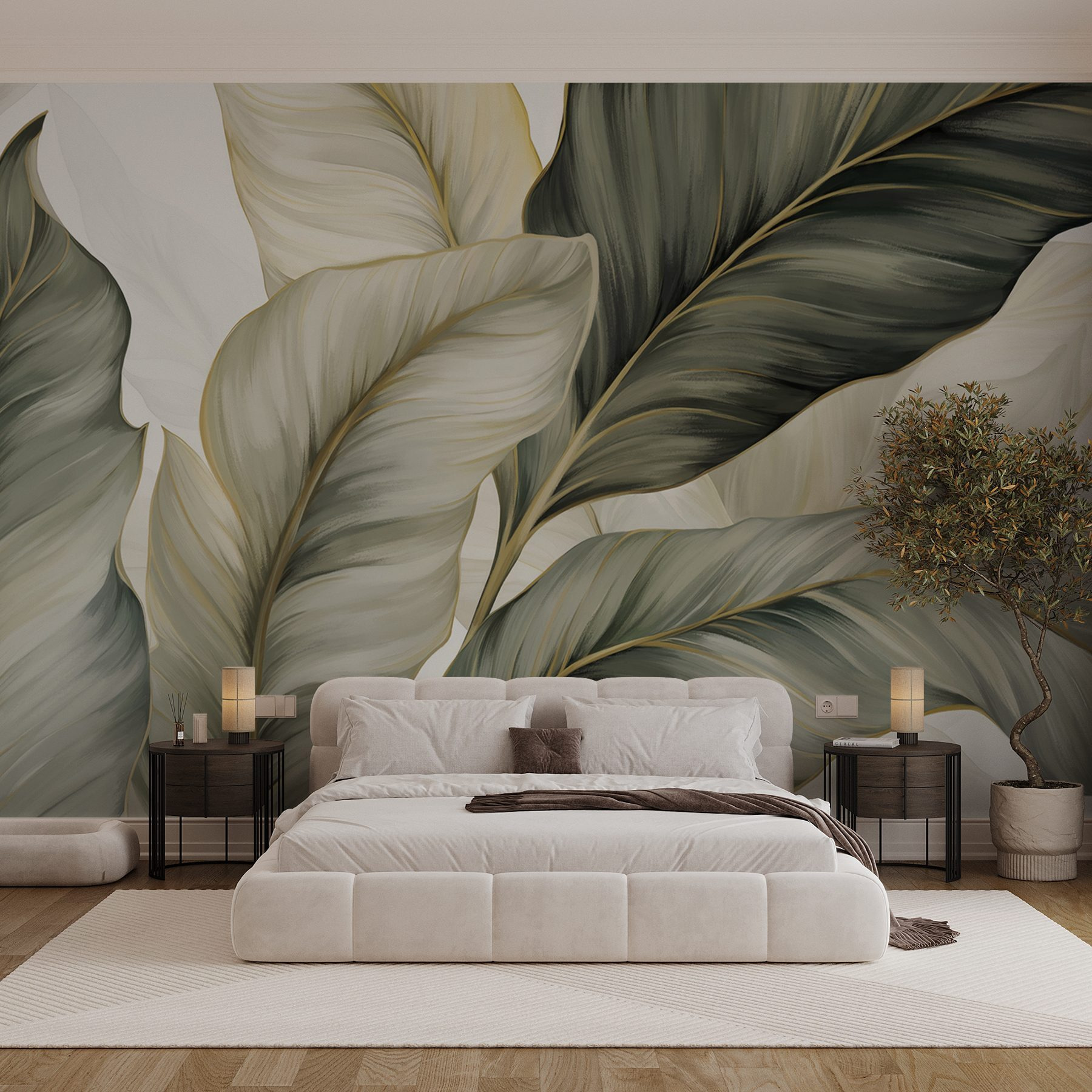 Bring a slice of nature indoors with “Soft Tones of Lush Foliage.” This mural wraps your space in those calming greens and gentle grays that practically whisper serenity. Imagine sipping your morning coffee while this stunning backdrop makes you feel like you’re perched in a cozy botanical nook. The soft textures and delicate lines give it an almost dreamy feel—perfect for those lazy weekends. Plus, let’s be honest, who wouldn’t want to feel like they’re surrounded by serene greenery every day? It’s not just a wall; it’s a vibe, a mood, maybe even a bit of magic!