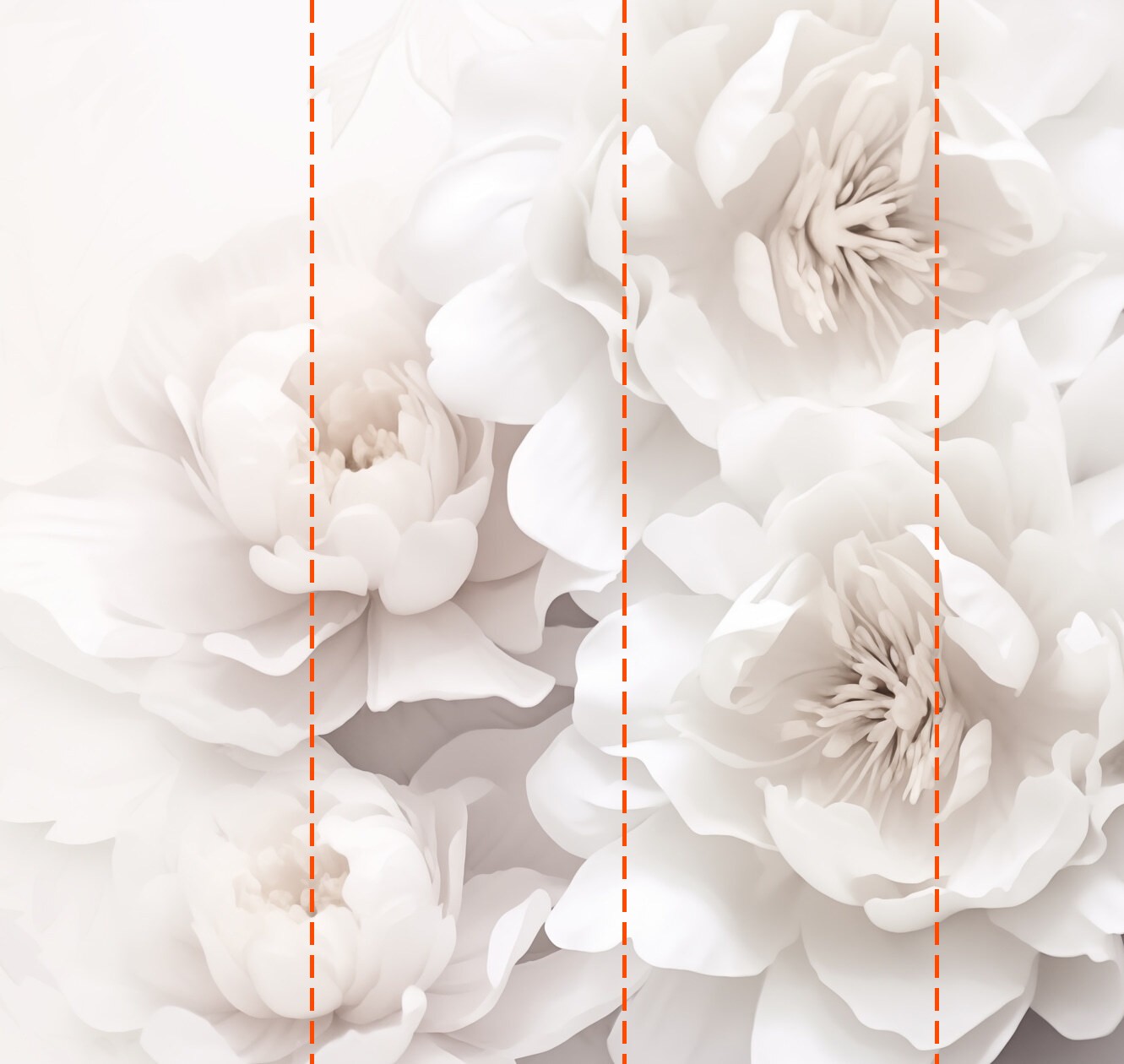 Dostosowujemy tapetę na podstawie wymiarów. Wystarczy określić rozmiar ściany, którą chcesz wytapetować podczas składania zamówienia. Następnie wyprodukujemy i wyślemy tapetę w określonych wymiarach, podzieloną na wygodne pasy o szerokości do 50 cm.