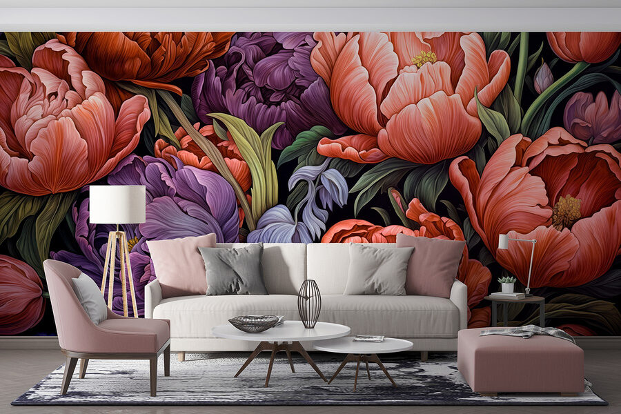 Zmień swoją ścianę w kwitnącą oazę dzięki fototapecie „Vibrant Blossoms in Rich Colors”. Wyobraź sobie, że wkraczasz do ogrodu pełnego bujnych piwonii i eleganckich tulipanów, których każdy płatek szepcze opowieści o wiośnie. Głębokie, bogate odcienie tańczą na subtelnym tle, tworząc przytulną atmosferę, która zachęca do marzeń. Każde spojrzenie przypomina spacer pośród natury, tchnąc życie w każdą przestrzeń. Idealny dla ściany, którą dotychczas ignorowałeś, niemal spodziewasz się, że przelotnie przeleci motyl. Dodaj tę fototapetę, a będzie to jak podarowanie Twojemu pokojowi bukietu, który nigdy nie więdnie – po prostu czysta, żywa radość przez cały rok!