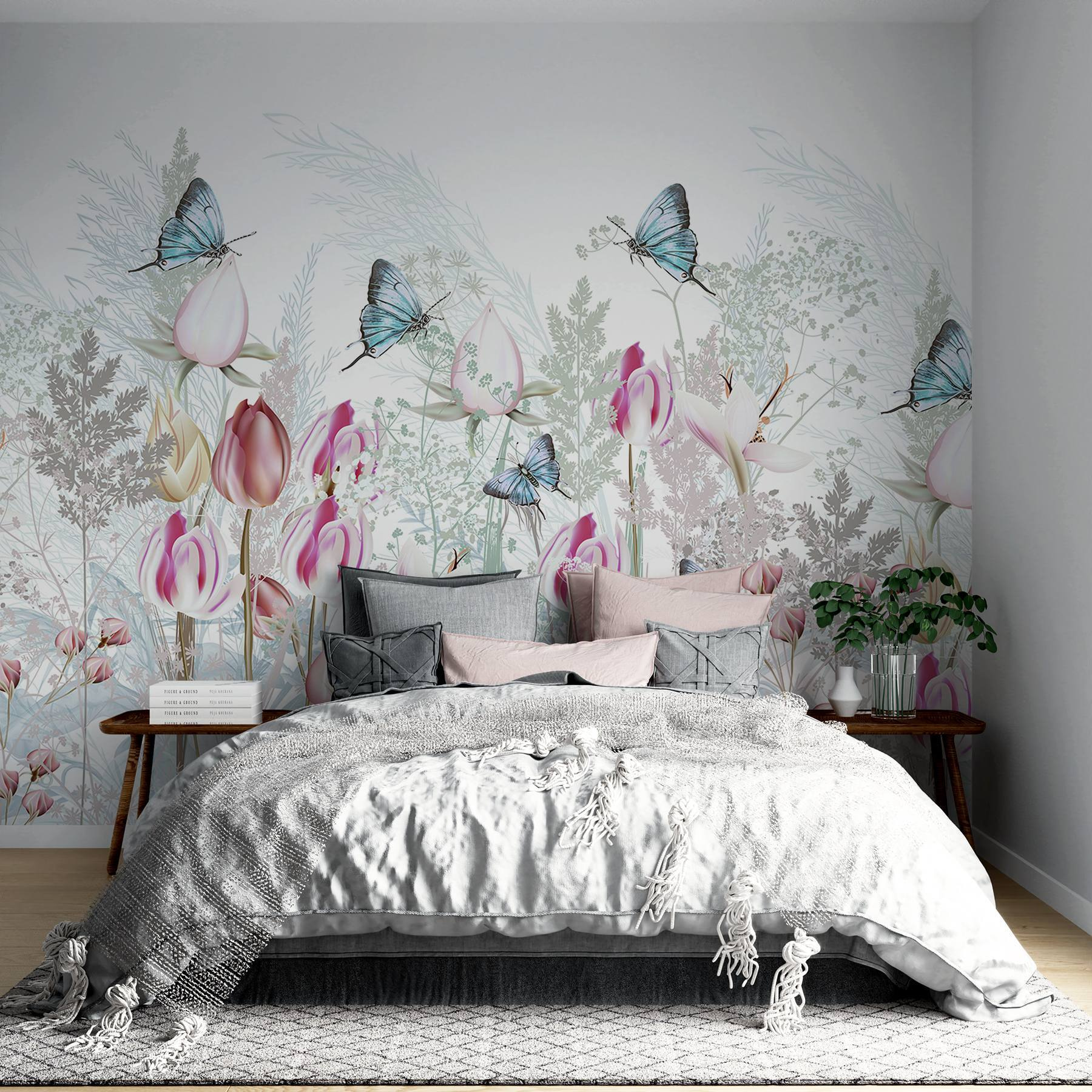 Odmień każde pomieszczenie dzięki czarującej fototapecie ściennej Fluttering Beauty in a Floral Garden. Ta fototapeta jest jak spacer po kwitnącym raju, z delikatnymi kwiatami i wdzięcznymi motylami, które niemal wydają się przelatywać obok. Przynosi poczucie spokoju i radości, sprawiając, że czujesz się, jakbyś wszedł do sekretnego ogrodu w domu. Wyobraź sobie, że popijasz kawę, wpatrując się w tę tętniącą życiem scenę, wyobrażając sobie ciepłą bryzę i delikatny szelest liści. Idealny do przytulnego salonu lub spokojnej sypialni, jest zachwycającym akcentem, który dodaje życia twojej przestrzeni. Kto by pomyślał, że dekorowanie może tak podnosić na duchu?