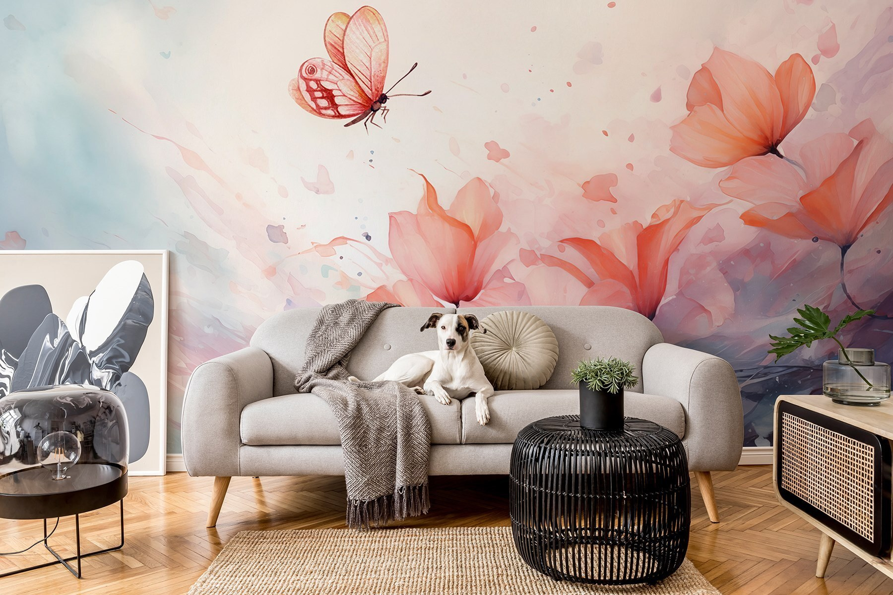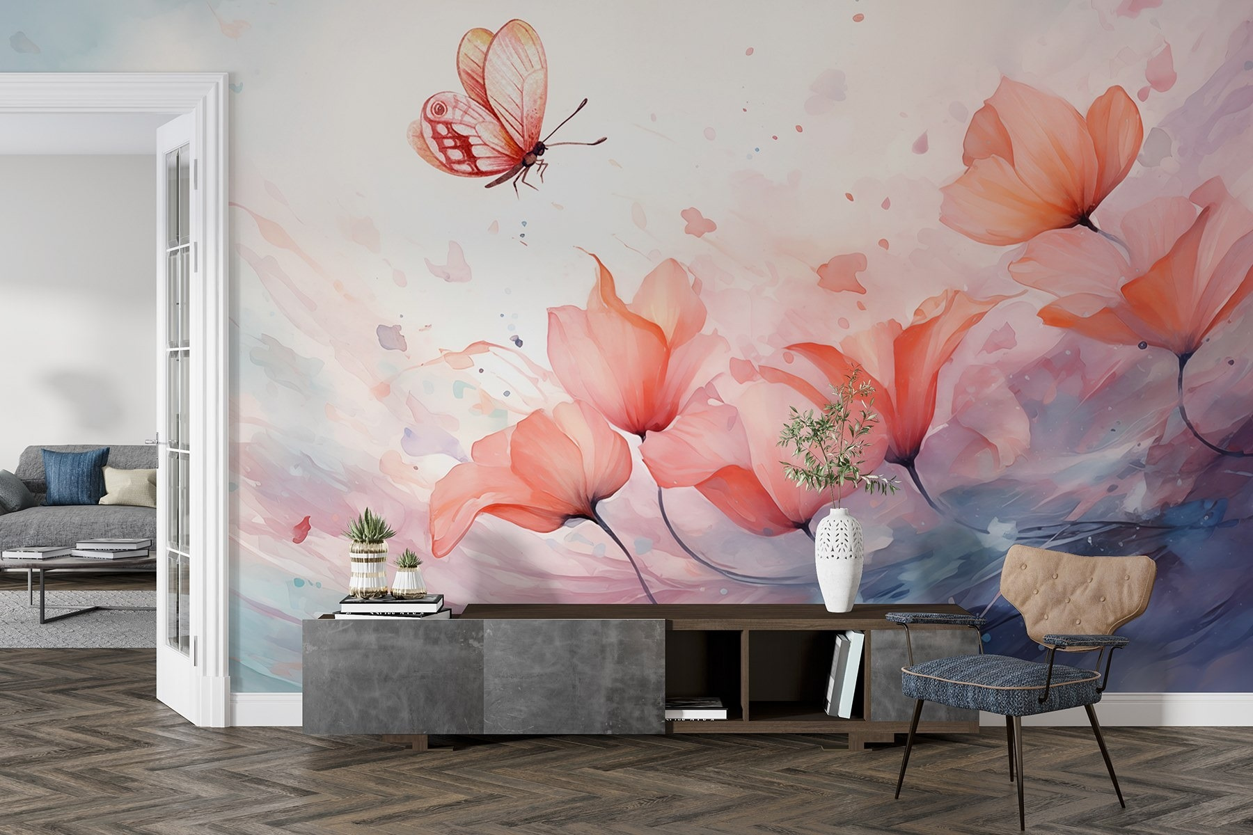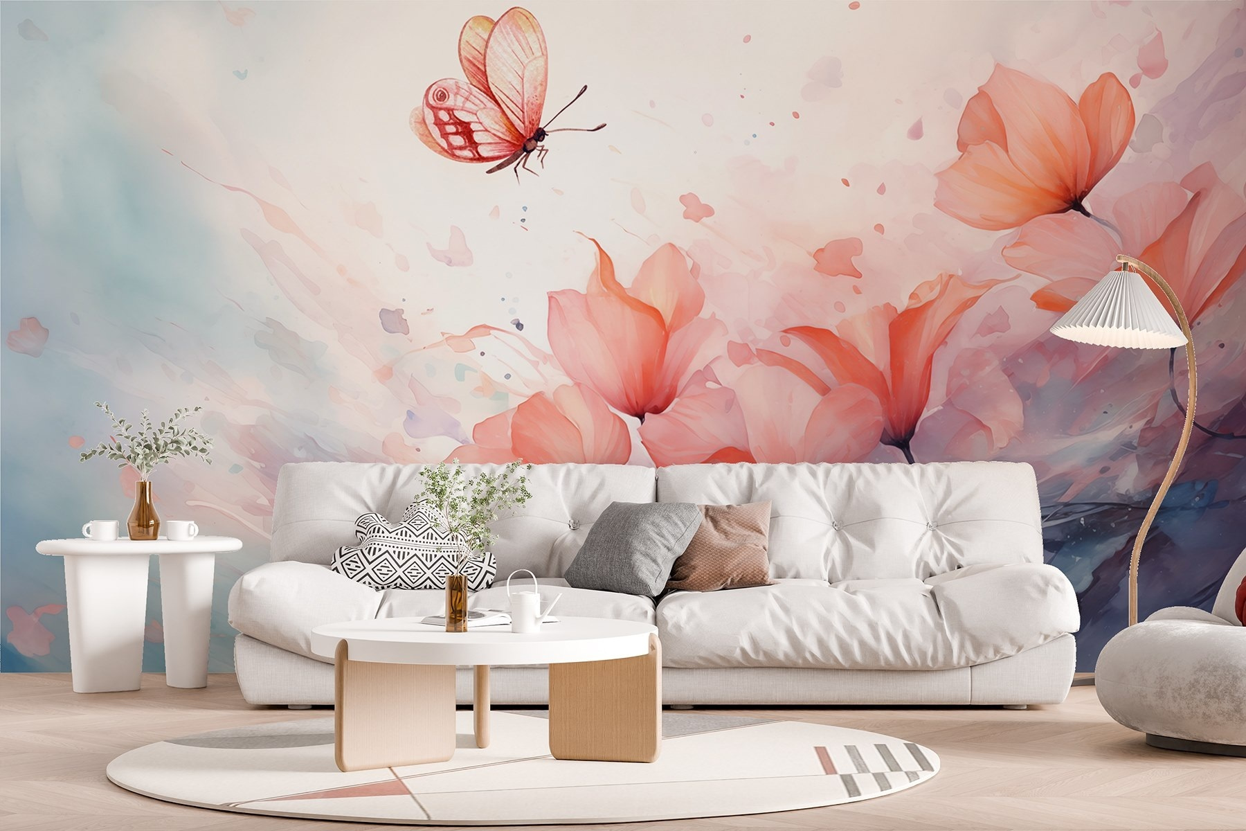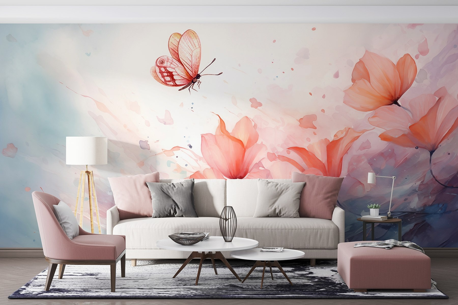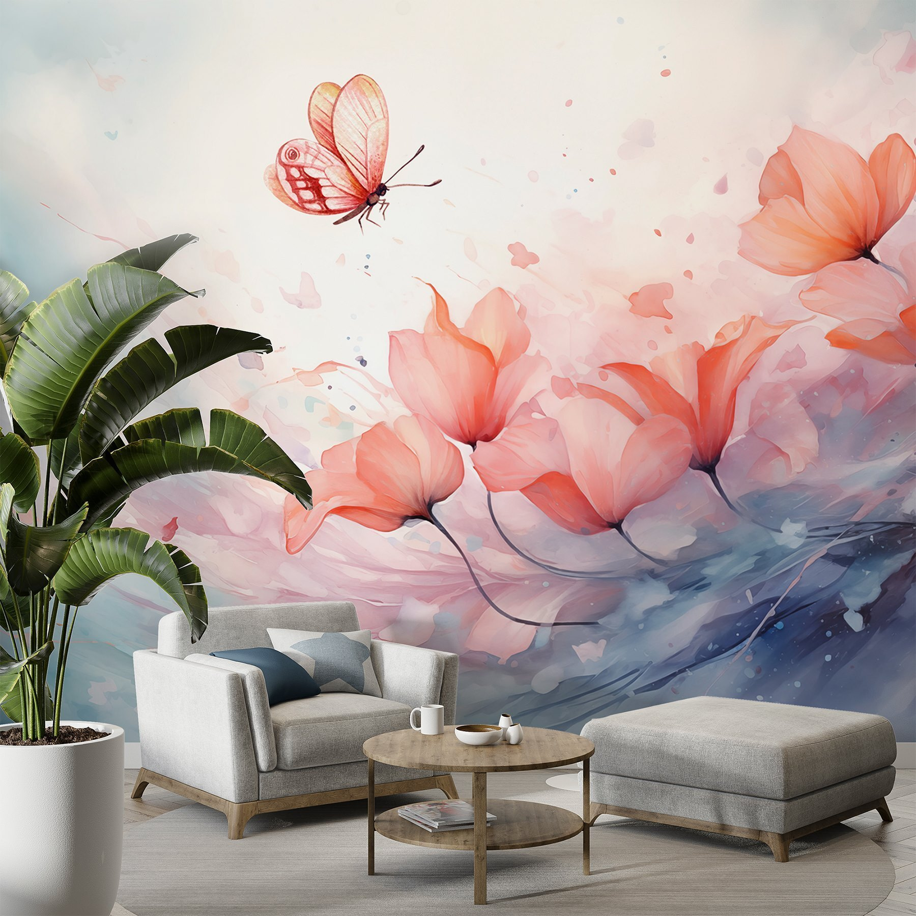 Odmień swoją przestrzeń dzięki tej czarującej fototapecie ściennej, na której delikatny motyl fruwa nad spokojnym morzem kwiatów. To jak kawałek magii natury w twoim domu! Wyobraź sobie, że każdego dnia budzisz się w tym delikatnym akwarelowym śnie. Delikatne odcienie przywołują spokojne wibracje, sprawiając, że każde pomieszczenie staje się bardziej przyjazne. Idealny do nasłonecznionego kącika lub przytulnego kącika do czytania, zachęca do marzeń i uśmiechu. Może po prostu wywołać wspomnienie kapryśnego spaceru po ogrodzie, a może zainspirować przyjazną rozmowę przy kawie o pięknie w prostych rzeczach. To dekoracja, która opowiada piękną historię.