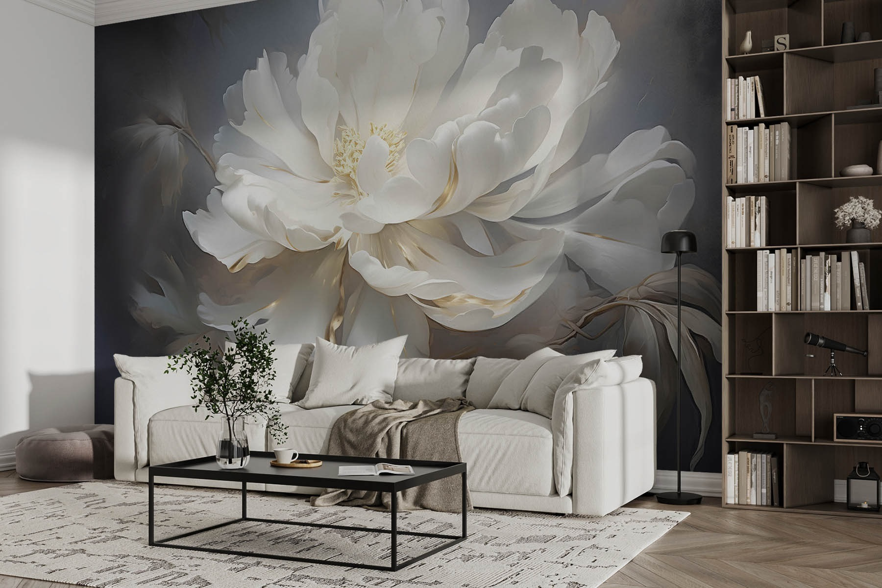 Zmień każde pomieszczenie dzięki „Spokojnemu pięknu delikatnych białych płatków”. Ta fototapeta to nie tylko dekoracja, ale także odrobina spokoju. Wyobraź sobie, że budzisz się w otoczeniu delikatnej elegancji białych piwonii, których płatki szepczą sekrety spokojnych poranków i pogodnych popołudni. Wyobraź sobie przytulne wieczory spędzone z dobrą książką, światło wpadające do pokoju i tańczące na tej pięknej grafice. To jak posiadanie ogrodu w domu, bez alergii! Idealna do salonu, sypialni, a nawet kącika do czytania, ta fototapeta wnosi delikatny urok, który zmiękcza przestrzeń. Zachęca do swobodnego oddychania, relaksu, a może nawet do małej drzemki. W końcu kto nie chciałby odrobiny spokojnego piękna w swoim codziennym życiu?