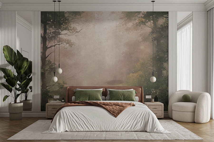 Wkrocz do sennej ucieczki z fototapetą ścienną Foggy Forest. To jak przeniesienie spokoju spokojnego lasu prosto do salonu – ta fototapeta oddaje cichy urok natury z delikatnie kołyszącymi się drzewami i bujną zielenią, a wszystko to otulone delikatną mgiełką. Wyobraź sobie przytulne wieczory spędzone pod tym spokojnym baldachimem, być może z dobrą książką lub wygodnym kocem.