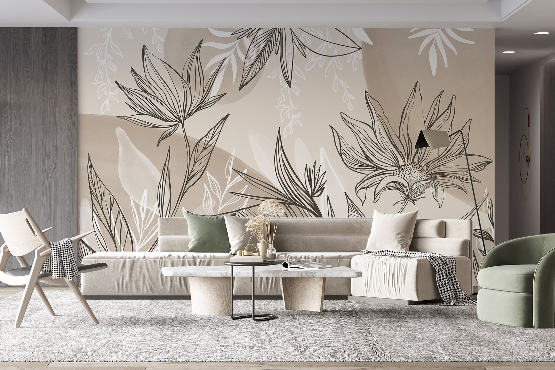 Wkrocz do świata, w którym natura spotyka się z elegancją dzięki tej botanicznej fototapecie. Wyobraź sobie delikatne odcienie tańczące na ścianach, tworzące pogodną atmosferę, która zachęca do relaksu. Wyobraź sobie, że zasiadasz z dobrą książką, a delikatne szkice liści i kwiatów otaczają twój przytulny kącik. To nie tylko grafika ścienna; to jak przeniesienie ogrodu do domu bez konieczności używania konewki. Znajomi będą podziwiać twój szykowny styl, a kto nie kocha odrobiny uroku inspirowanego naturą? Idealne do każdej przestrzeni, radośnie przypominają o otaczającym nas pięknie. Twoje ściany będą Ci wdzięczne!