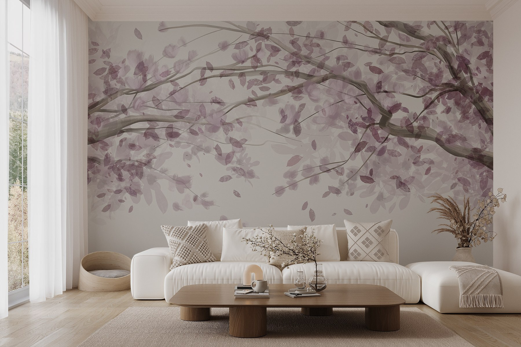 Przekształć dowolny pokój w spokojną ucieczkę dzięki tej czarującej fototapecie przedstawiającej drzewo ozdobione eleganckimi fioletowymi liśćmi. To jak przeniesienie kawałka uspokajającego japońskiego ogrodu do wnętrza. Wyobraź sobie popijanie herbaty podczas wpatrywania się w te miękkie akwarelowe gałęzie – to poprawia nastrój! Ta fototapeta szepcze spokój, dzięki czemu idealnie nadaje się do przytulnego kącika do czytania lub zabawnego pokoju dziecięcego. Plus, te fioletowe odcienie? Dodają uroku bez przytłaczania zmysłów. Kto nie poczułby odrobiny radości za każdym razem, gdy przechodzi obok? Idealny dla każdego, kto szuka odrobiny wdzięku natury w domu. Ujarzmij piękno!