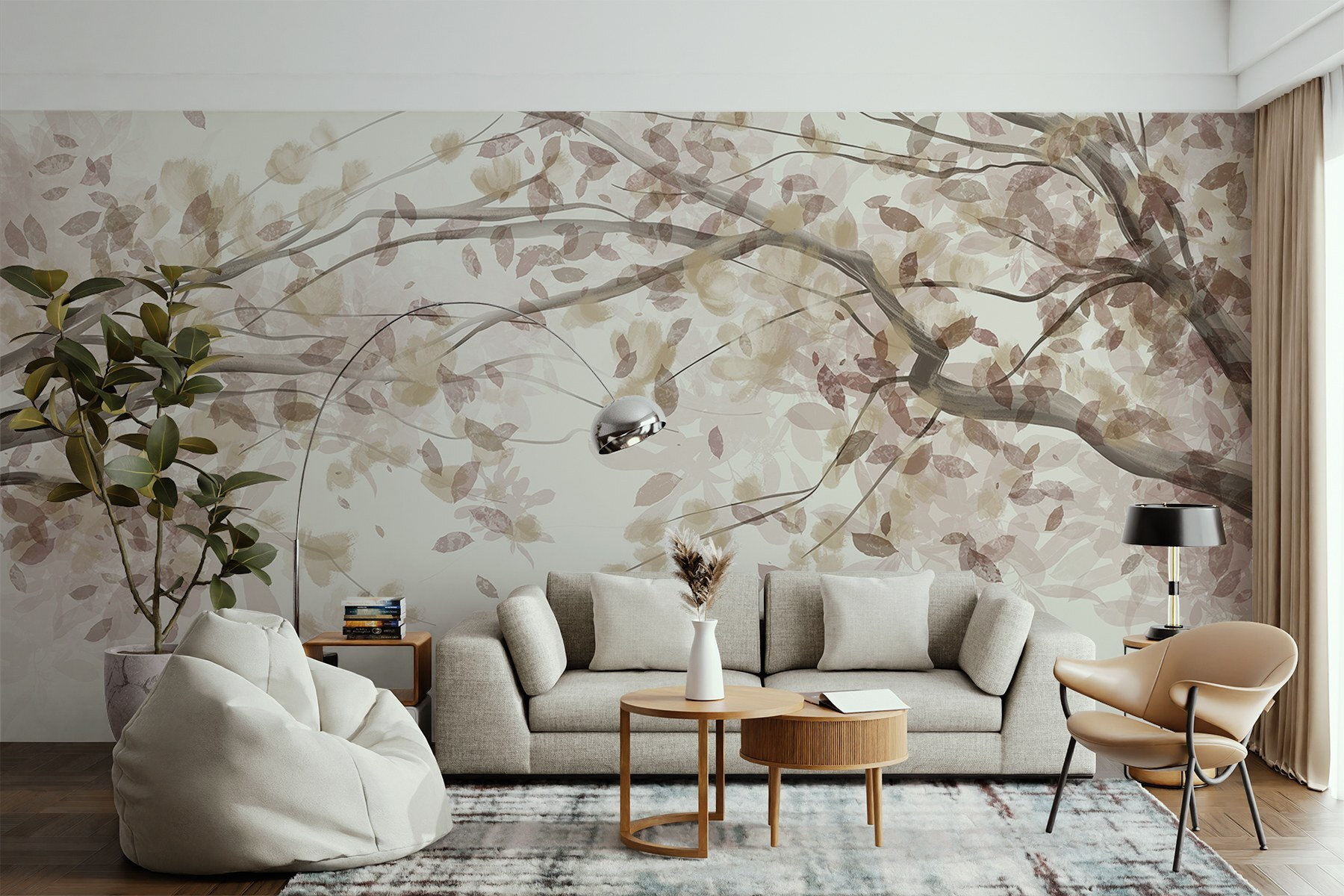 Odmień każde pomieszczenie dzięki tej zachwycającej fototapecie ściennej, która oddaje urok gałęzi drzew ozdobionych liśćmi. Wyobraź sobie, że wchodzisz do spokojnego japońskiego ogrodu bez wychodzenia z domu. Delikatne odcienie tworzą uspokajające tło, szepcząc spokój, jednocześnie dodając odrobinę wdzięku natury. Idealnie nadaje się do przytulnego kącika do czytania lub kojącej sypialni. Wyobraź sobie te chwile cichej refleksji, być może z filiżanką gorącej herbaty w pobliżu. Kto potrzebuje ucieczki na łono natury, gdy ta fototapeta wprowadza spokój do wnętrza? Miłośnicy natury i entuzjaści dekoracji zakochają się w jej subtelnej elegancji!