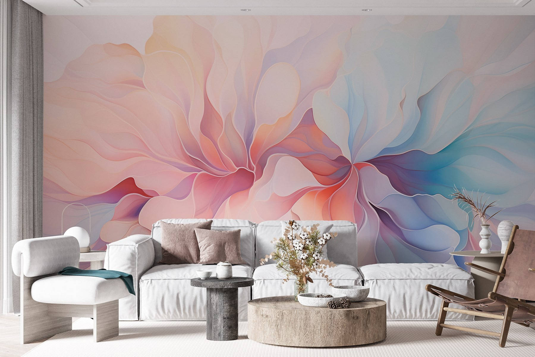 Odmień swoją przestrzeń dzięki fototapecie “Soft Hues in Delicate Harmony”, na której kolory tańczą jak delikatna bryza w wiosenny poranek. Wyobraź sobie, że wchodzisz do pokoju, w którym czujesz się jak w miękkim uścisku – te stonowane pastelowe kwiaty gotowe, by otulić cię spokojem. Idealna do przytulnego kącika do czytania lub spokojnego kącika biurowego, ta fototapeta dodaje tylko odrobinę kaprysu bez popadania w przesadę. Przyjaciele mogą się pochylić, podziwiając sposób, w jaki światło gra na warstwach, wywołując rozmowy, które są tak lekkie, jak sama fototapeta. Kto by pomyślał, że dekorowanie może być tak kojące? To jak przeniesienie kawałka natury do wnętrza, bez pyłków!