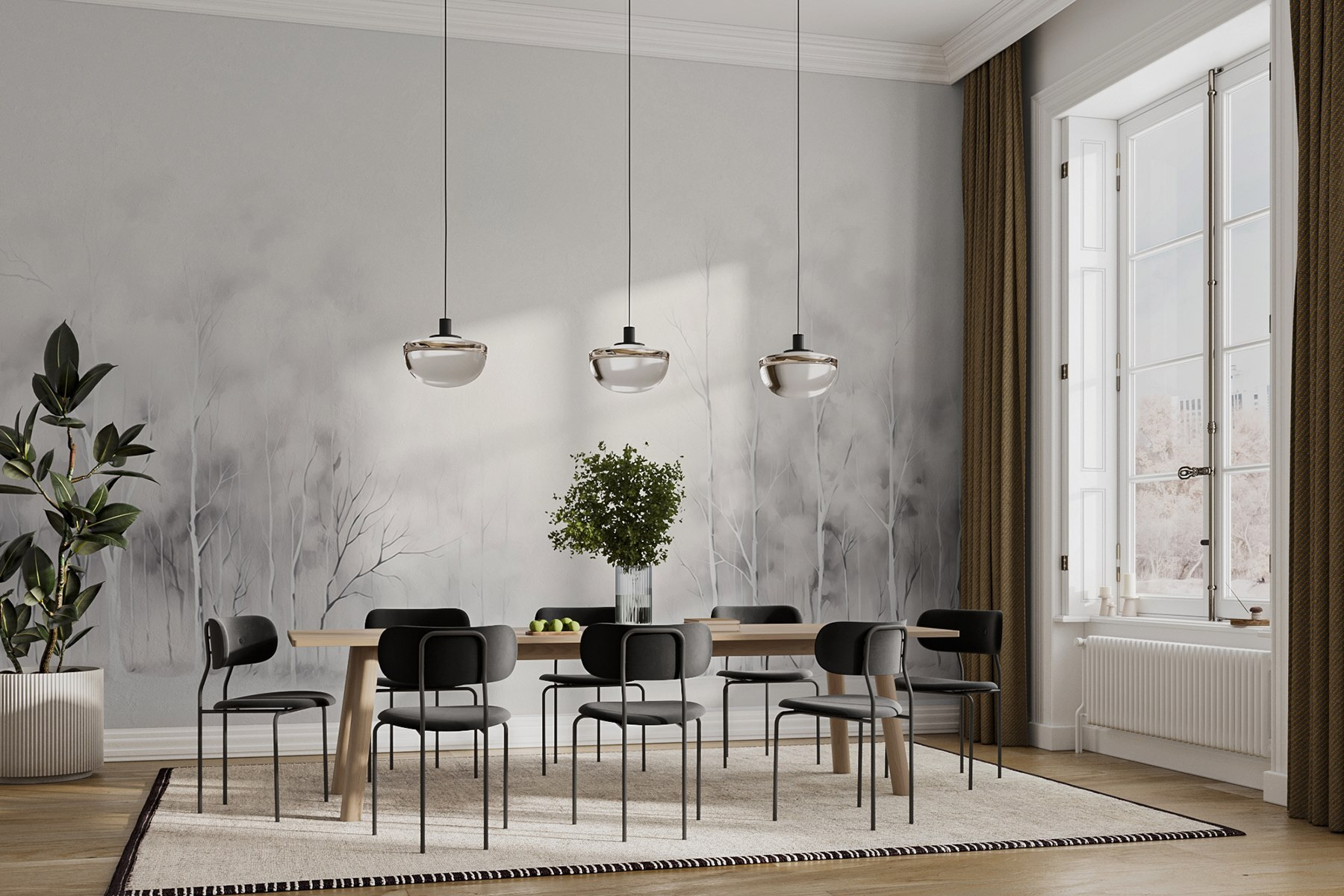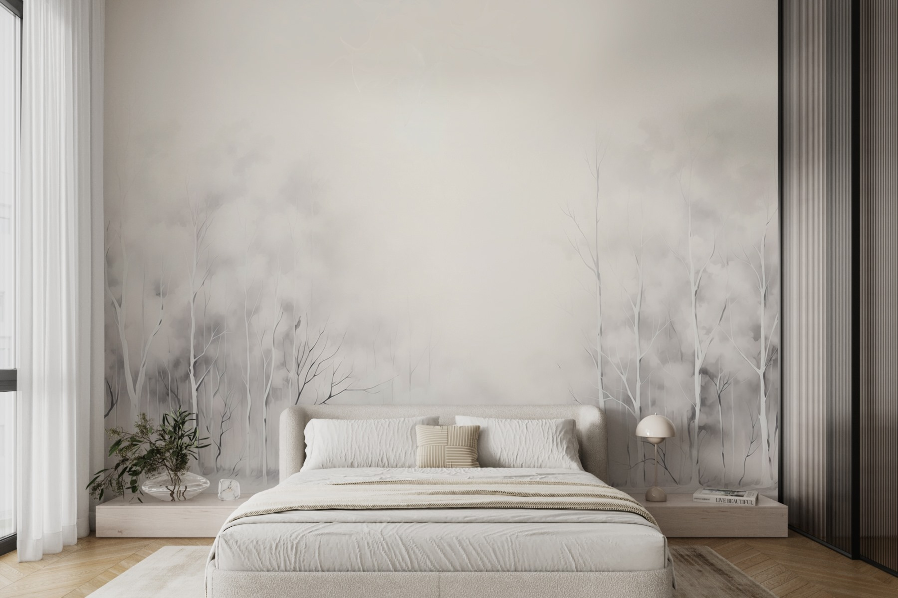 Przenieś spokojne piękno zaśnieżonego lasu prosto na swoje ściany dzięki tej uroczej fototapecie przedstawiającej grupę drzew. Wyobraź sobie, że wchodzisz do zimowej krainy czarów za każdym razem, gdy wchodzisz do pokoju. Miękkie, stonowane odcienie tworzą spokojną atmosferę, idealną do relaksu po długim dniu. To tak, jakby mieć spokój natury w domu. Niezależnie od tego, czy popijasz kakao na kanapie, czy pracujesz nad przytulnym projektem, ta fototapeta zachęca do ciepła i spokoju. Co więcej, przyjaciele i rodzina z pewnością będą o nią pytać – czy ktoś ma punkty? Dlaczego więc nie pozwolić swoim ścianom na opowiadanie historii?