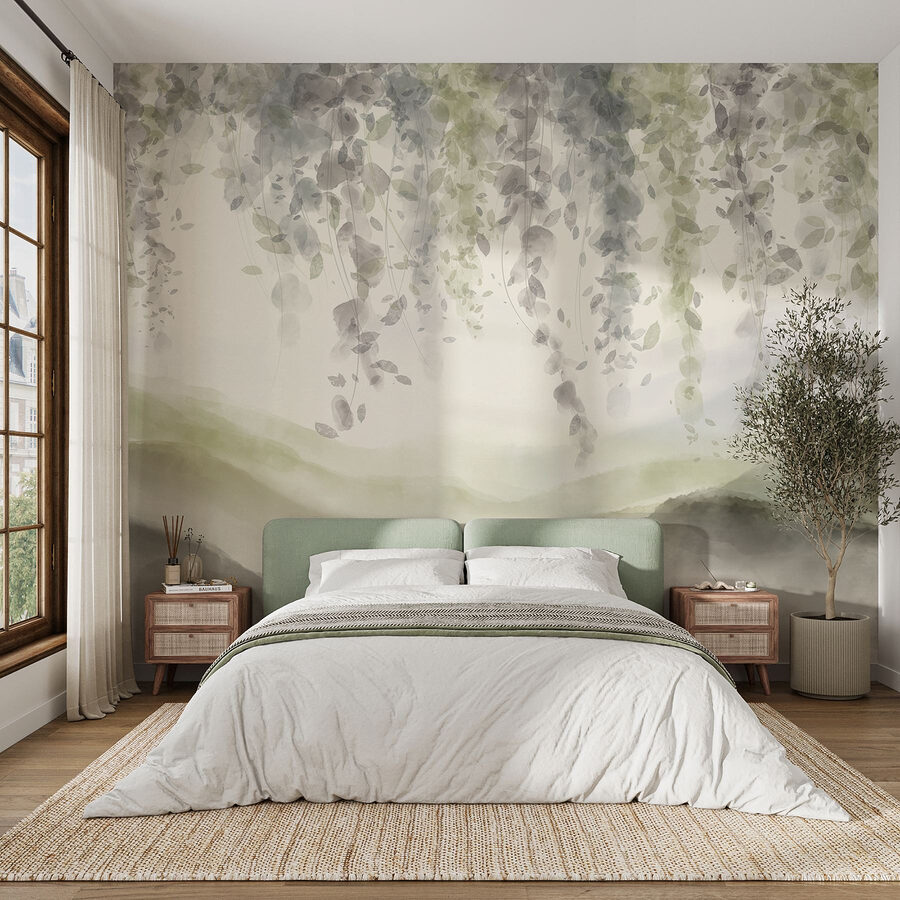 Odmień każdą przestrzeń dzięki tej marzycielskiej fototapecie, która oddaje piękno natury niczym delikatny szept. Wyobraź sobie, że budzisz się w spokojnym krajobrazie, w którym delikatne liście wydają się spływać kaskadami z sufitu, przywołując spokojne leśne odosobnienie. To jak przeniesienie się na zewnątrz – idealne na przytulne wieczory lub leniwe weekendy, kiedy relaks jest najważniejszy. Delikatne akwarele tworzą kojące tło, idealne do stworzenia spokojnej atmosfery. Wyobraź sobie, że popijasz herbatę, wpatrując się w te czarujące liście, pozwalając umysłowi wędrować. To więcej niż dekoracja; to mały kawałek natury, który inspiruje do marzeń.