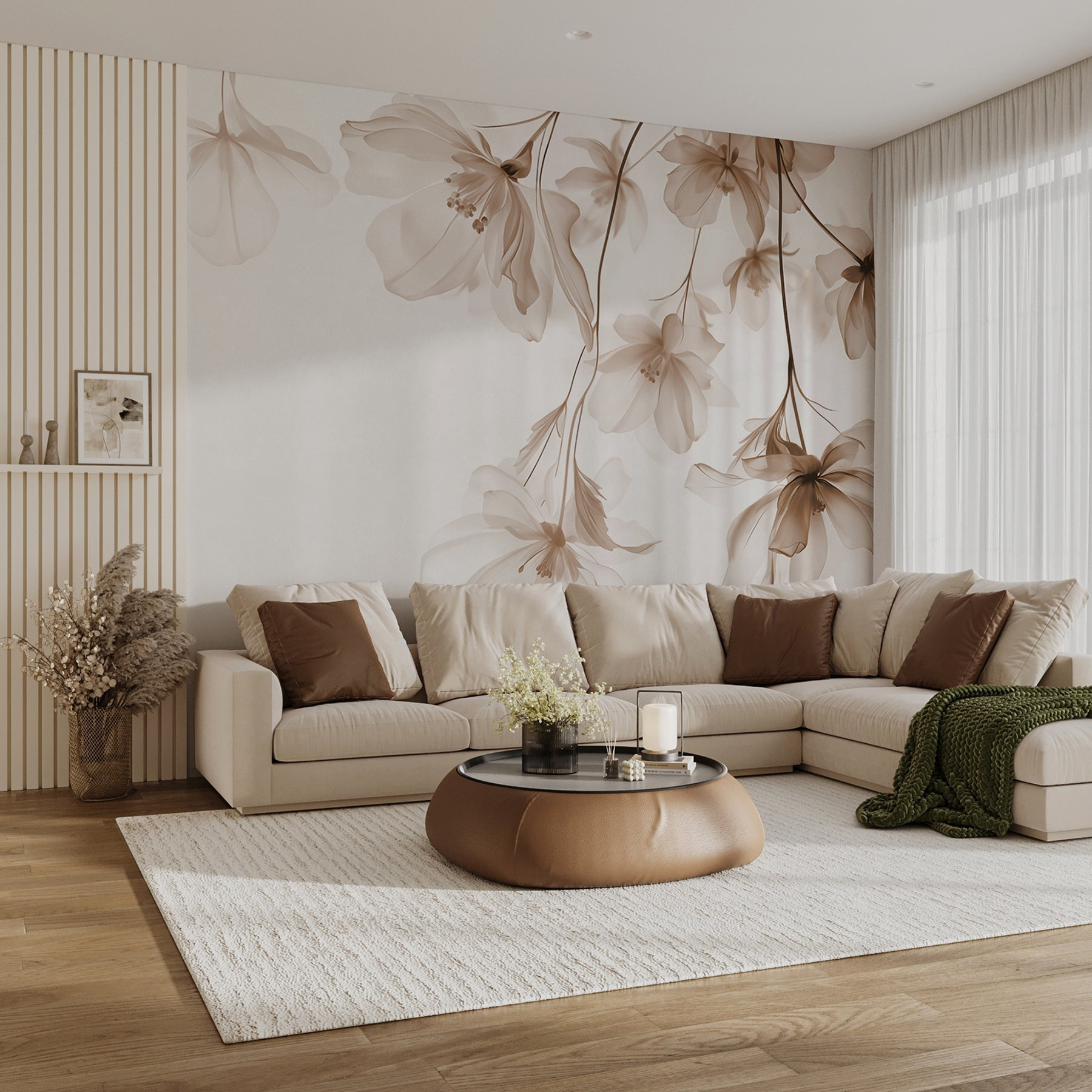 Odmień każdą przestrzeń dzięki tej oszałamiającej fototapecie ściennej z delikatnymi kwiatami w łagodnych odcieniach. Wyobraź sobie, że wchodzisz do spokojnego ogrodu prosto z salonu – każdy kwiat szepcze spokój, jakby obraz natury ożył. To nie tylko wystrój; to doświadczenie. Wyobraź sobie, że przyjmujesz przyjaciół, a ich rozmowy schodzą na dalszy plan, gdy podziwiają ten piękny widok. Delikatne kolory tchną ciepło do pomieszczenia, czyniąc je otwartym i zachęcającym. Idealny do stworzenia spokojnej atmosfery odosobnienia. Mały kawałek raju na ścianie.