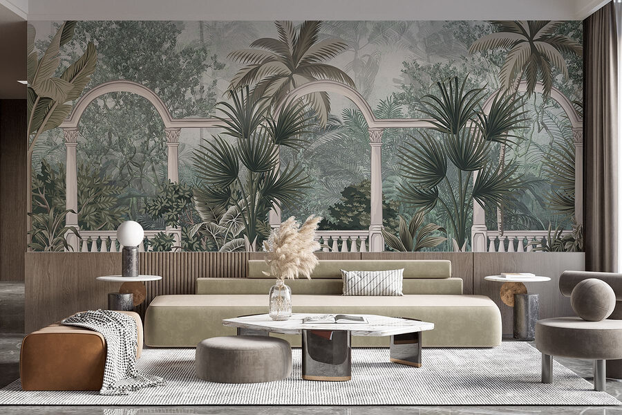 Przekształć swoją przestrzeń w tropikalną ucieczkę dzięki tej oszałamiającej fototapecie ściennej z bujnymi palmami i uroczym balkonem. Wyobraź sobie, że popijasz poranną kawę, wygrzewając się w mini raju – to jak zaproszenie lata do domu, przez cały rok! Delikatna zieleń i detale architektoniczne tworzą kojącą atmosferę, idealną na te dni, kiedy po prostu potrzebujesz małej ucieczki od rzeczywistości. Poczuj delikatną bryzę (nawet jeśli to tylko wentylator), ponieważ ta fototapeta nadaje uspokajający ton. To jak wakacje bez biletu lotniczego. Idealna do przytulnych zakątków lub nawet tej dużej, pustej ściany, która aż prosi się o osobowość! Ciesz się spokojem i pozwól naturze zainspirować twój wystrój.