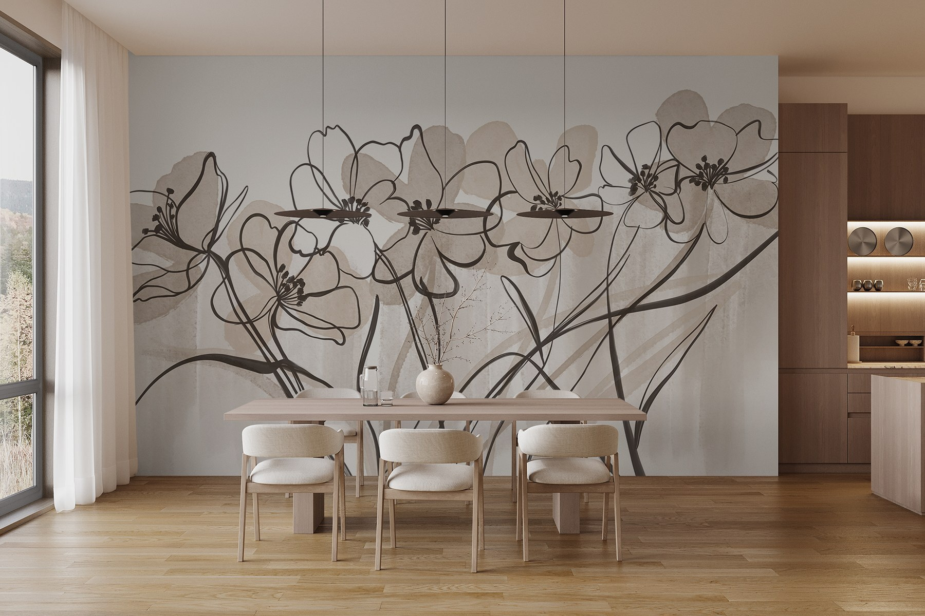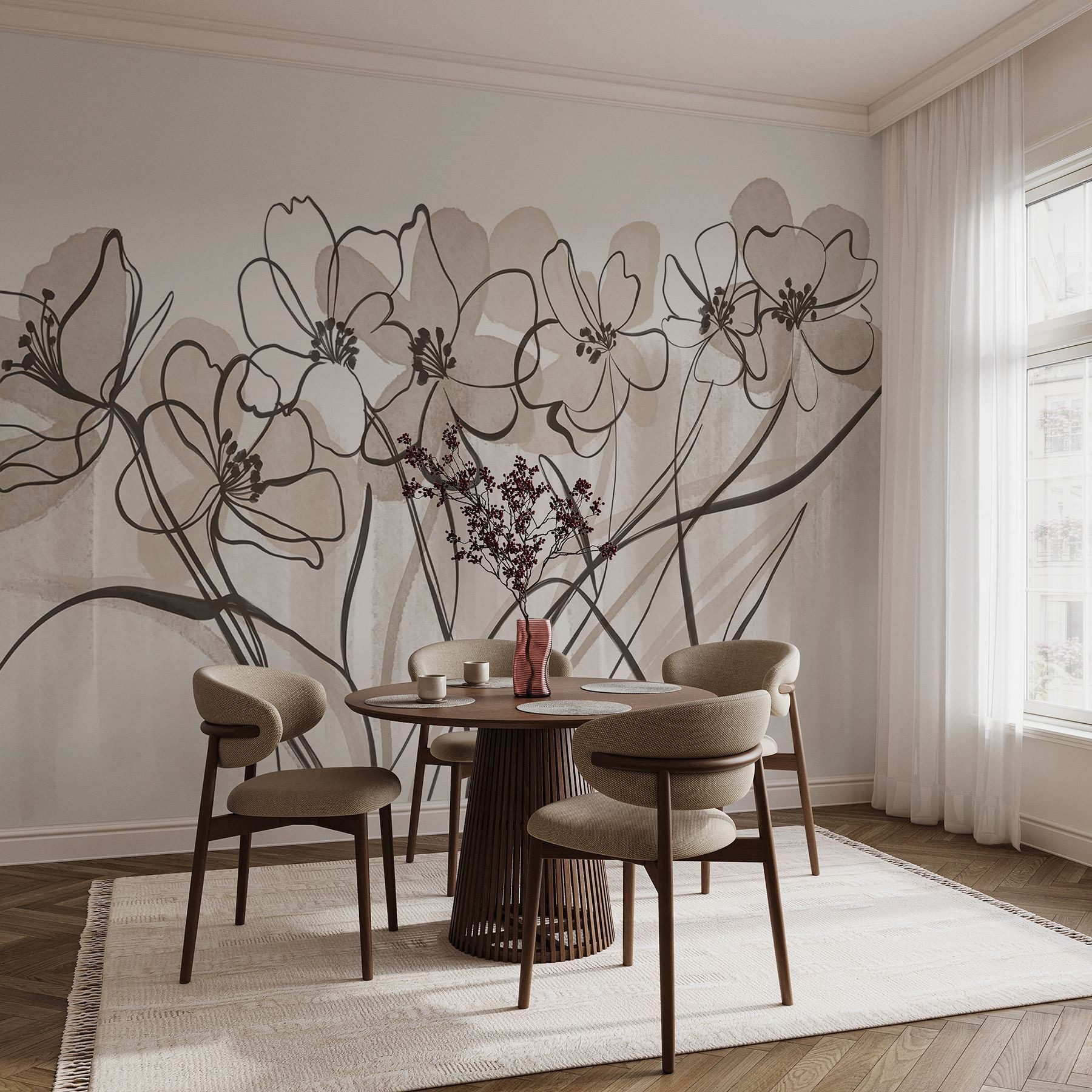 Rozjaśnij swoją przestrzeń dzięki tej pięknej fototapecie ściennej z delikatną linią kwiatów tańczących na miękkim białym tle. Wyobraź sobie, że wchodzisz do pokoju, w którym piękno natury uspokaja twój umysł nawet w najbardziej pracowite dni. Delikatne akwarele tworzą kojącą atmosferę, idealną do przytulnego kącika lub spokojnego biura. To tak, jakby mieć mały ogródek na ścianie, bez konewki! Znajomi mogą pomyśleć, że jesteś zaklinaczem przyrody. Dlaczego więc nie dodać odrobiny elegancji i kaprysu do swoich ścian?