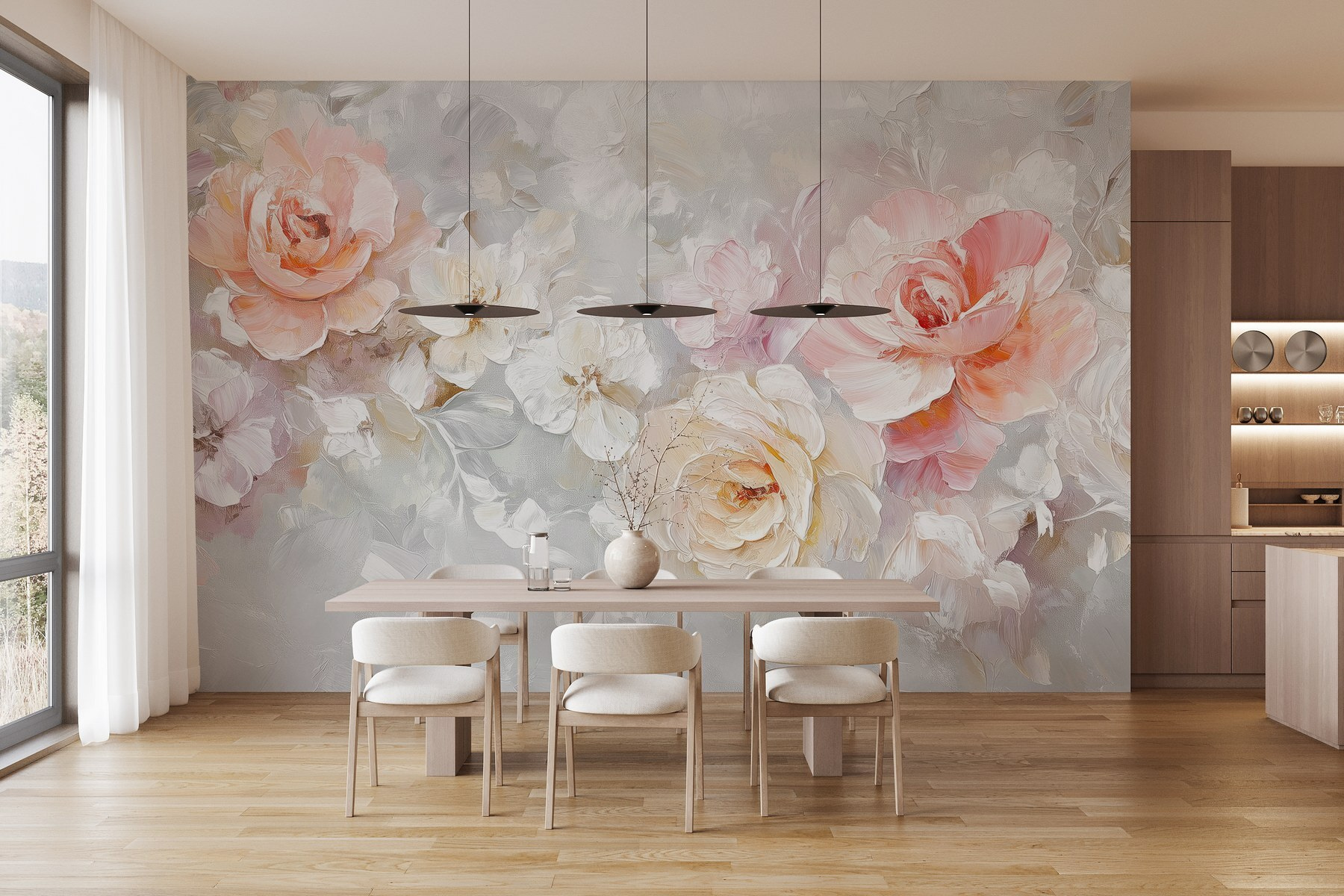 Odmień swoją przestrzeń dzięki tej pięknej fototapecie ściennej z kwiatami na delikatnym białym tle. Wyobraź sobie, że codziennie wchodzisz do ogrodu, w którym delikatne płatki kwitną specjalnie dla ciebie. Delikatne kolory tworzą spokojną atmosferę, idealną do przytulnego kącika do czytania lub optymistycznej kuchni. Wyobraź sobie spotkanie przyjaciół, którzy podziwiając dzieło sztuki, czują się szczęśliwsi. To jak przeniesienie kawałka natury do wnętrza, bez potrzeby podlewania lub uciążliwych pyłków. Po prostu czysta wizualna radość – kto by pomyślał, że fototapeta może tak bardzo poprawić nastrój?