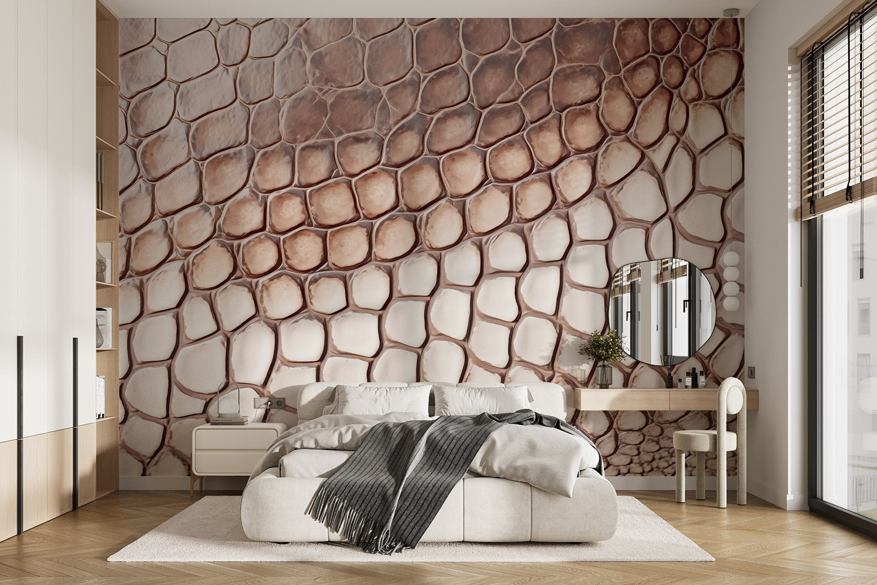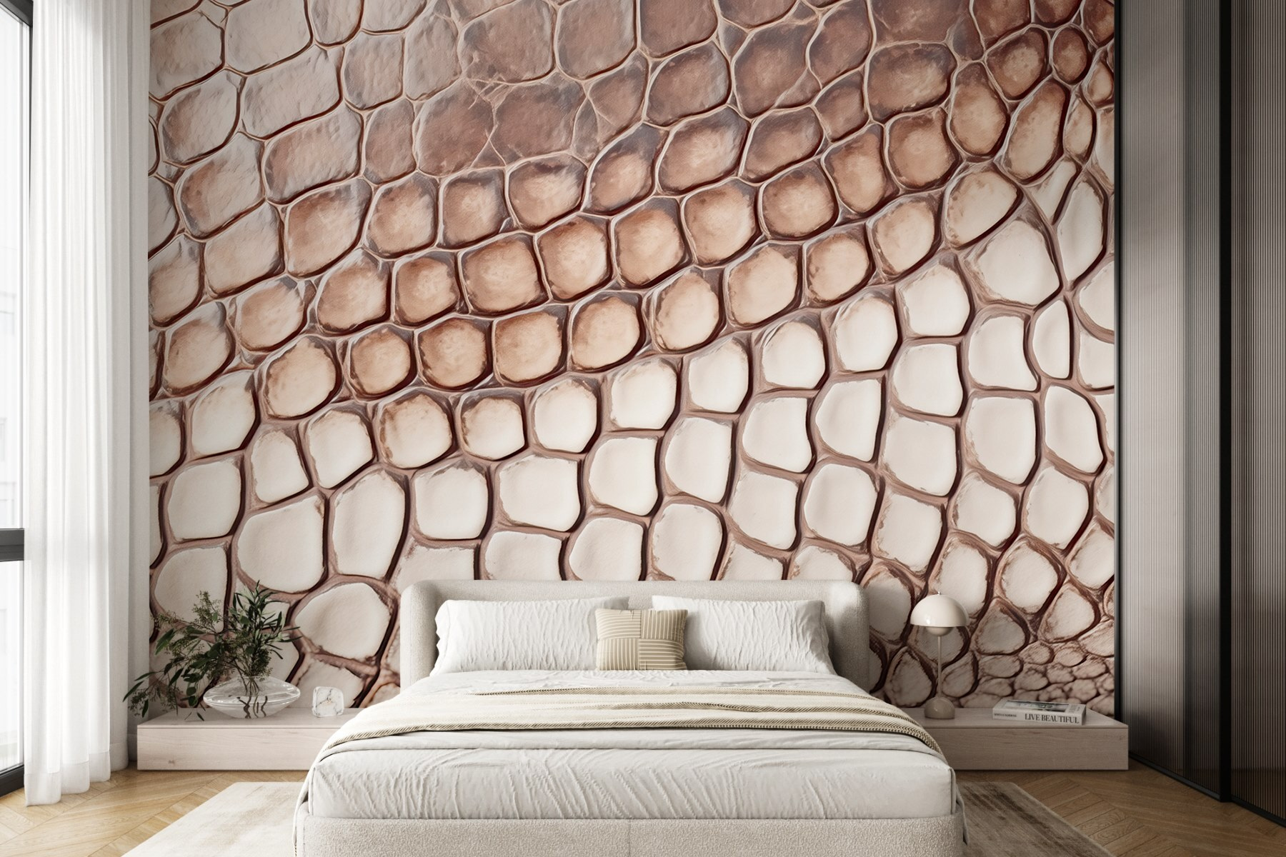 Odmień swoją przestrzeń dzięki odważnej i intrygującej fototapecie ściennej z wzorem skóry gada. Wyobraź sobie, że wchodzisz do pokoju, który wydaje się odrobinę dziki, a jednocześnie zaskakująco przytulny. Ten wzór dodaje nieoczekiwanego charakteru, sprawiając, że ściany zyskują osobowość. Idealna na ścianę w salonie, a nawet w kreatywnym miejscu pracy, zachęca do ciekawskich spojrzeń i komplementów.