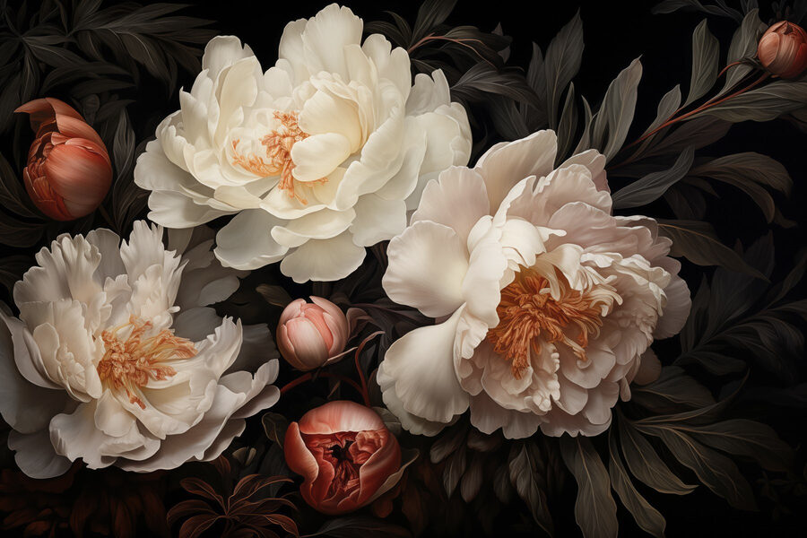 Wyobraź sobie, że wchodzisz do pokoju, w którym czujesz się jak w sekretnym ogrodzie, gdzie piękno piwonii ożywia wszystko. Ta fototapeta ścienna z oszałamiającą grupą białych kwiatów przekształca każdą przestrzeń w spokojne miejsce. Wyobraź sobie popijanie porannej kawy w otoczeniu miękkich płatków szepczących spokój. Bogate kontrasty kwiatów z ciemnymi liśćmi tworzą przytulny uścisk, idealny na leniwe popołudnia. To dopiero początek rozmowy! To jak posiadanie kawałka natury w domu, bez konewki. Dodaj odrobinę uroku i niech każde spojrzenie rozkwitnie radością.