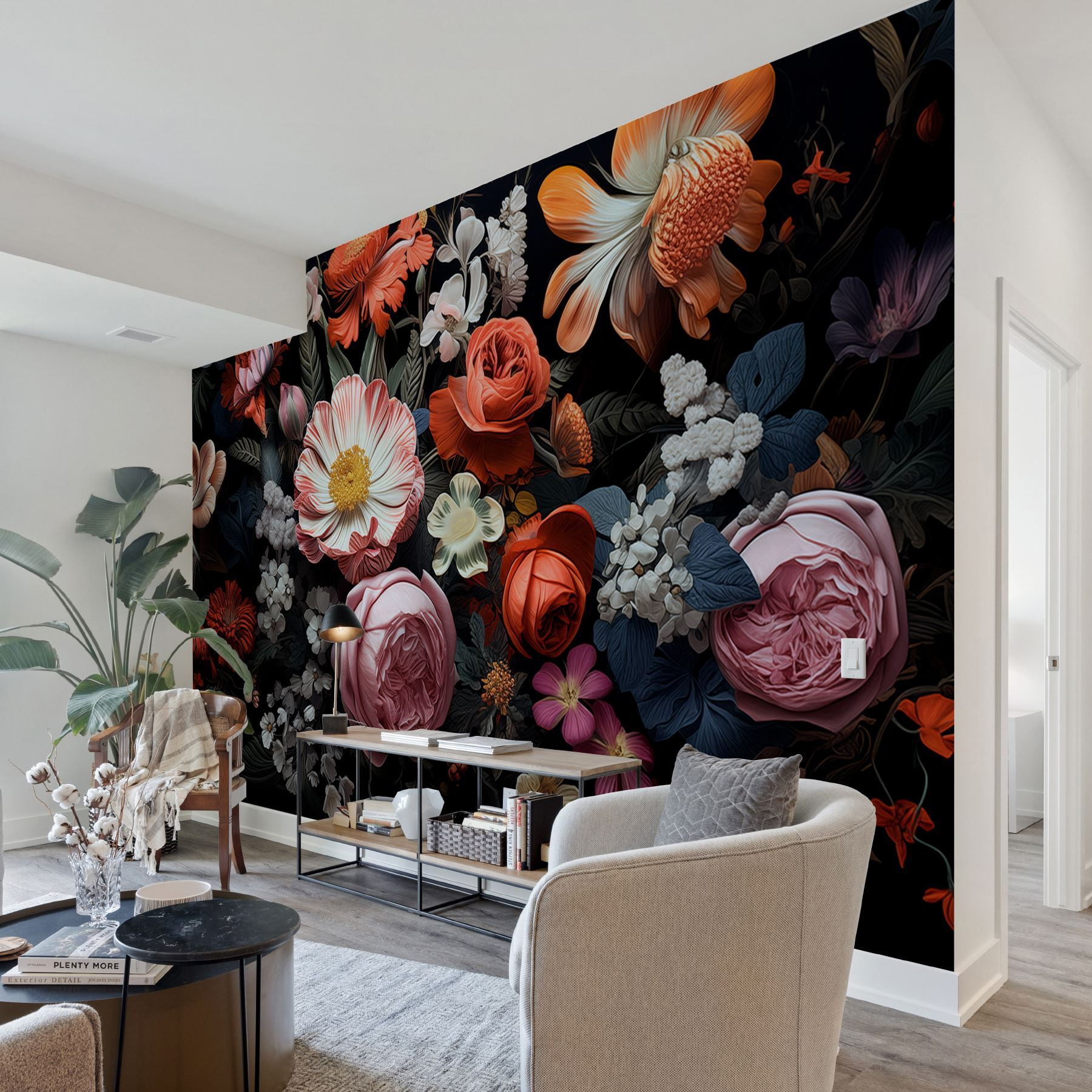 Odmień swoją przestrzeń dzięki tej oszałamiającej fototapecie ściennej z żywą grupą kwiatów na odważnym czarnym tle. Wyobraź sobie, że wchodzisz do pokoju, w którym piękno natury wydaje się eksplodować ze ścian. Każdy kwiat ma swoją własną historię, żywe płatki szepczą tajemnice ogrodu w pełnym rozkwicie. Ta fototapeta zaprasza ciepło i życie do każdego pomieszczenia – idealna do przytulnego salonu lub eleganckiego biura. Goście mogą wpatrywać się w nią, pytając, gdzie jest ogród. Czy jest coś lepszego niż odrobina kwiatowej inspiracji, aby wywołać radość?