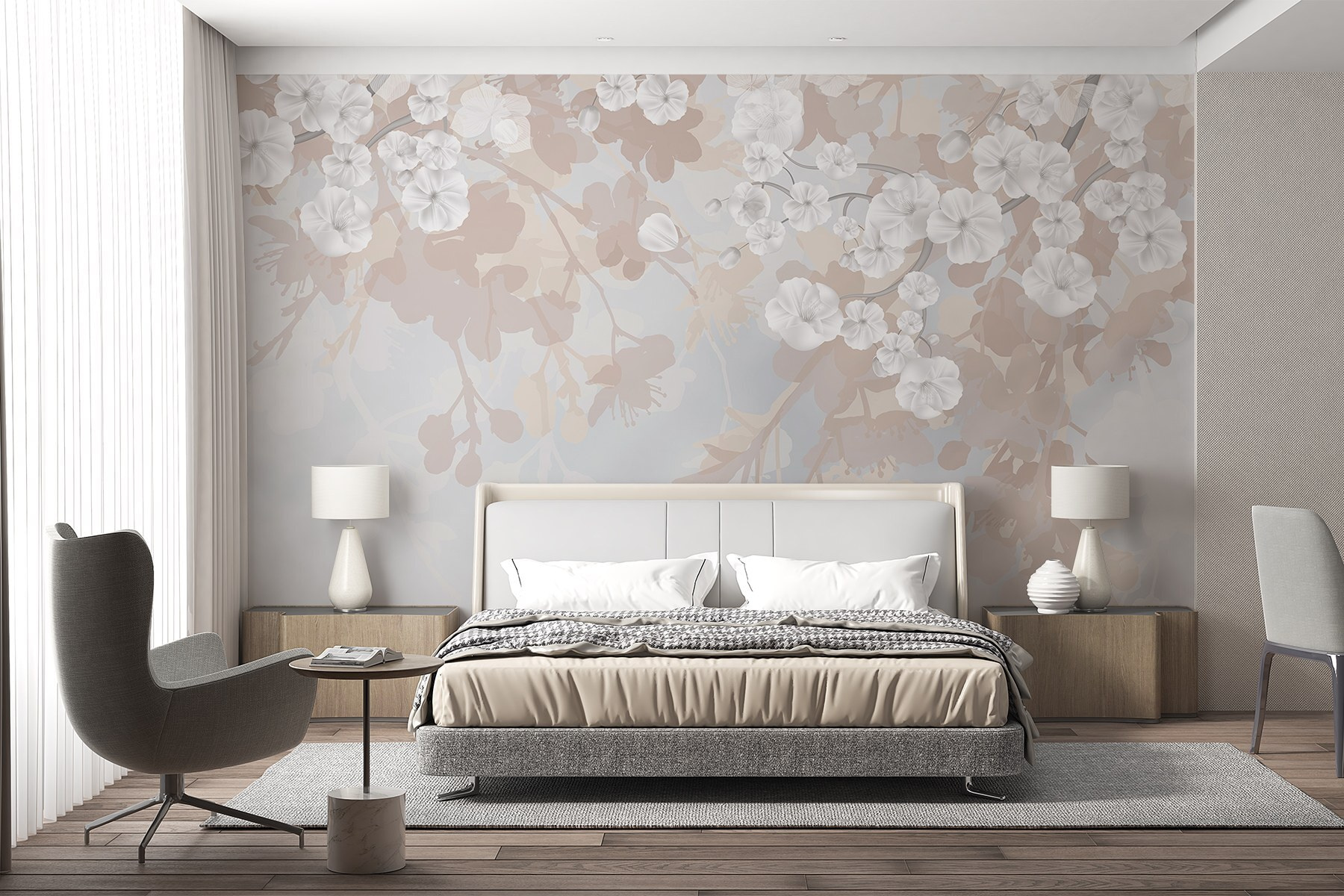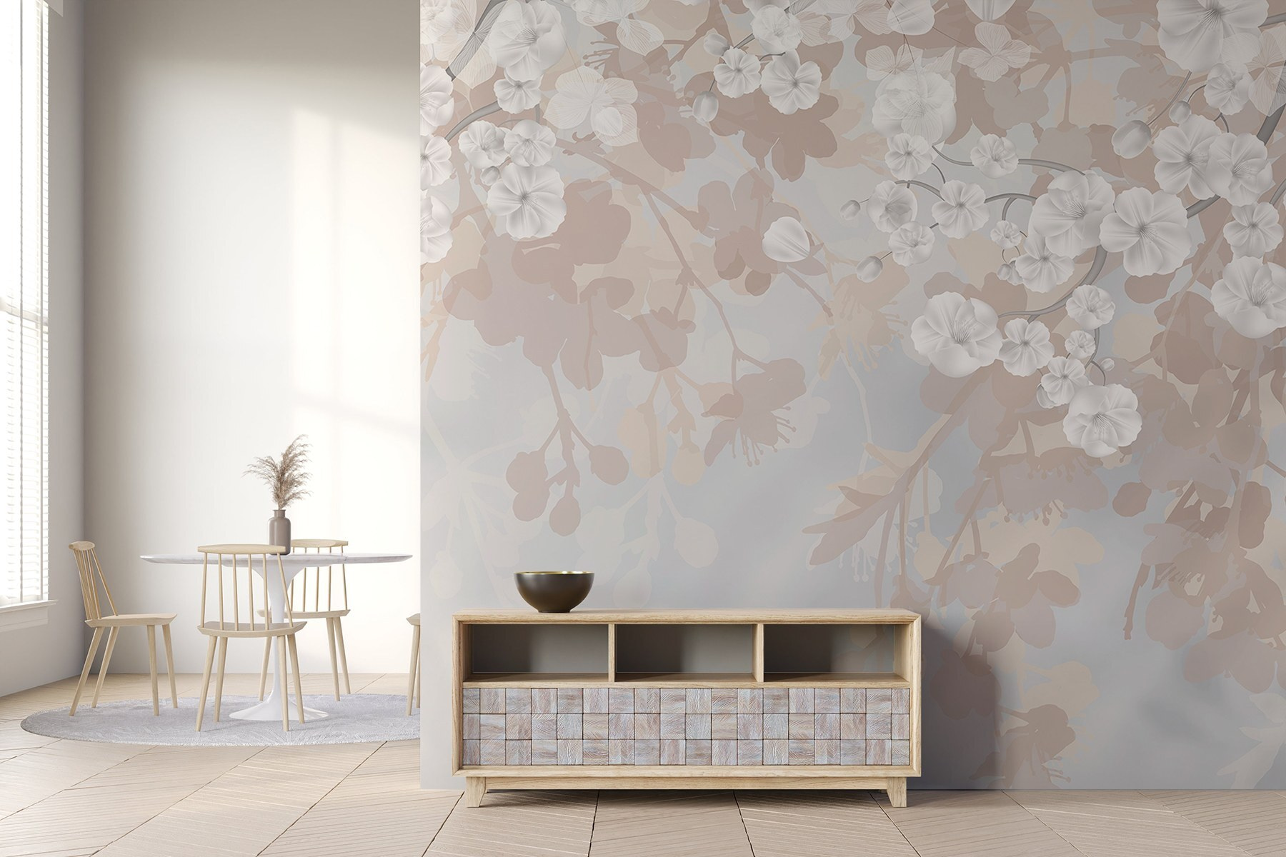 Odmień swoją przestrzeń dzięki marzycielskiemu urokowi fototapety ściennej “Białe kwiaty na gałęzi”. Delikatne kwiaty, miękkie odcienie i przewiewna atmosfera tej fototapety tworzą spokojną oazę w domu. Wyobraź sobie, że budzisz się i wygrzewasz w delikatnym blasku tych białych kwiatów – poważnie, to tak, jakbyś miał wiosnę przez cały rok. Idealny do przytulnego kącika do czytania, a nawet jadalni, zaprasza te urocze, beztroskie wibracje. Poza tym, kto nie chciałby poczuć się otoczony przez naturę? Jest dyskretny, ale efektowny, dzięki czemu każde spojrzenie staje się mini ucieczką. Więc śmiało, dlaczego nie skorzystać z odrobiny kwiatowej magii?